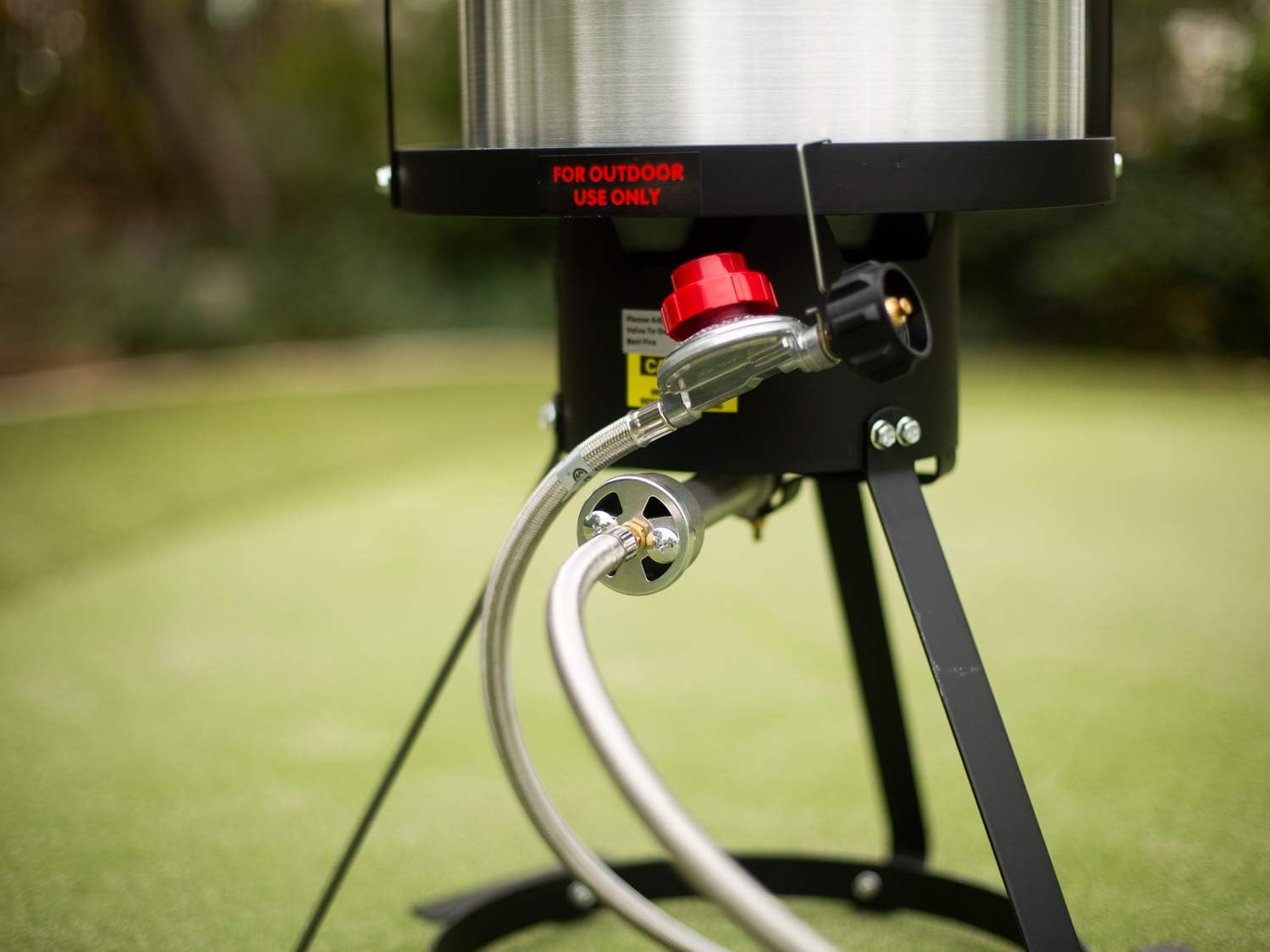 - Package Content - 30 qt. Pot, Steamer Basket, Burner Stand, LP Hose & Regulator, Temperature Thermometer, Poultry Rack, Marinade Injector