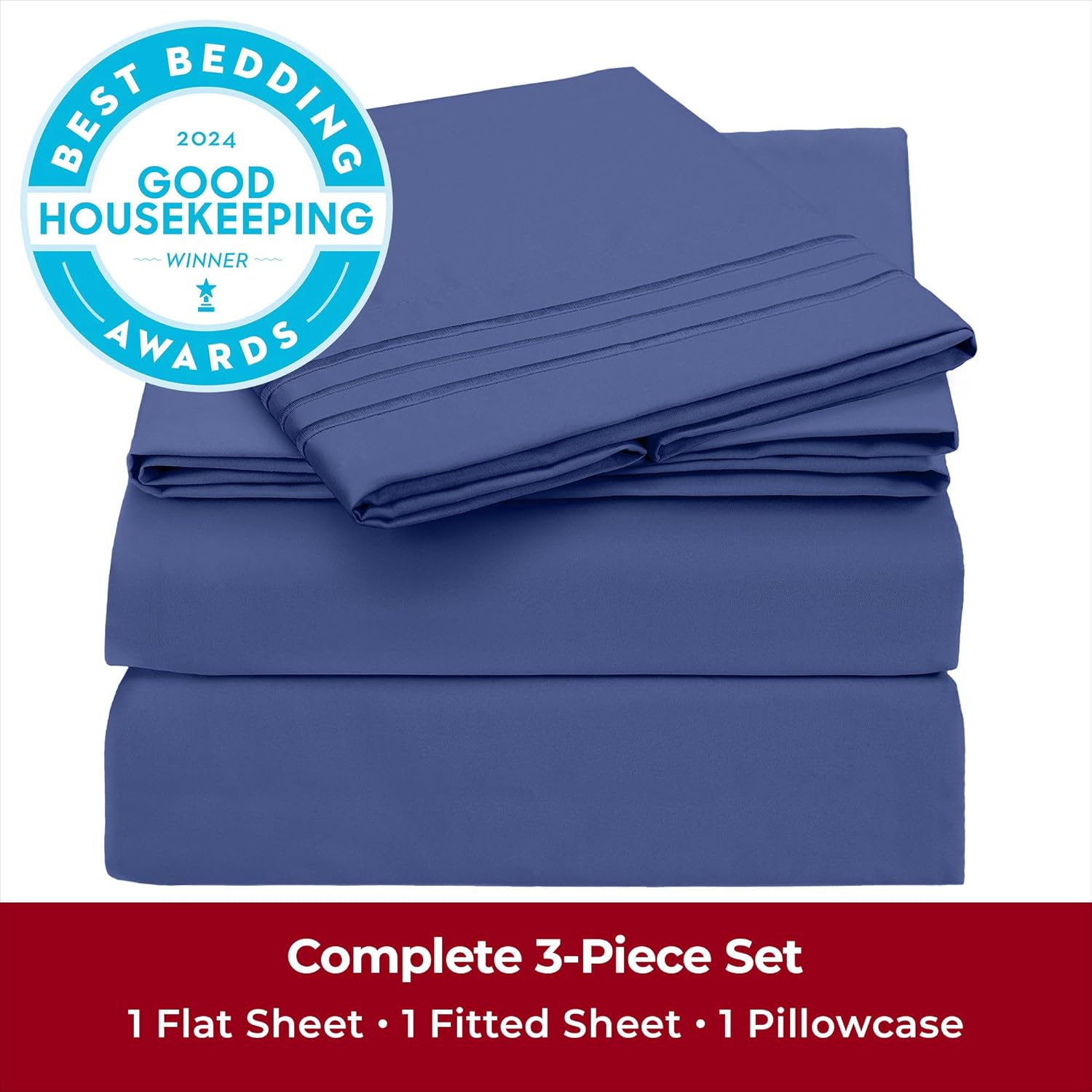 Mellanni Twin Sheets Set - 3 PC Iconic Collection Bedding - Hotel Luxury, Extra Soft, Cooling Bed Sheets - Wrinkle, Fade, Stain Resistant (Twin, Blue Nova)