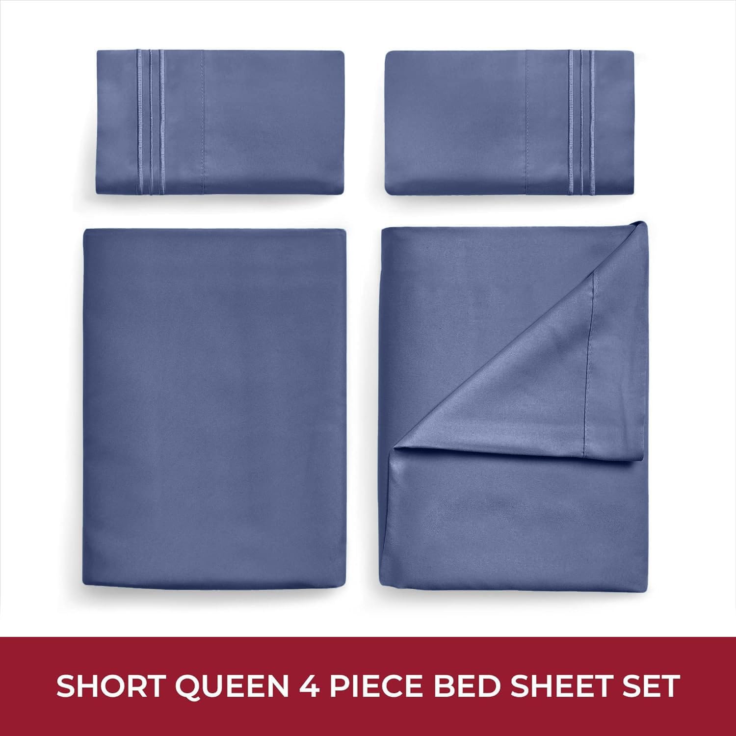Mellanni RV Short Queen Sheets - 4 PC Iconic Collection Bedding - Hotel Luxury, Extra Soft, Cooling Bed Sheets - Deep Pocket up to 10 inch (RV/Short Queen, Blue Nova)