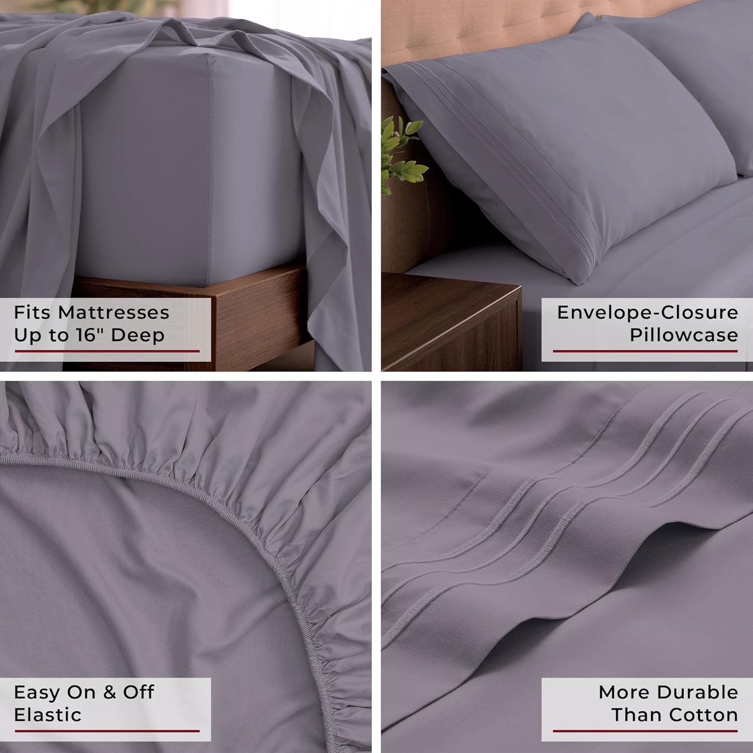 Mellanni King Sheets Set - 4 PC Iconic Collection Bedding - Hotel Luxury, Extra Soft, Cooling Bed Sheets - Wrinkle, Fade, Stain Resistant (King, Hazy Lilac)