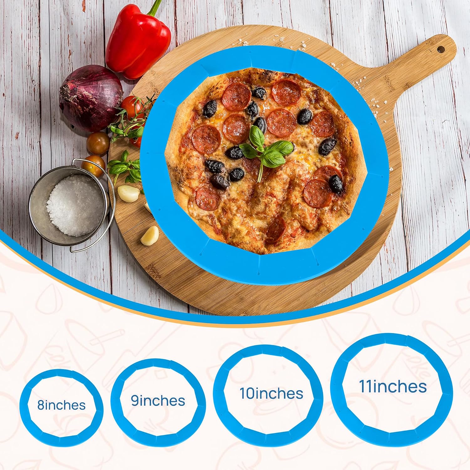 2 Pack Adjustable Pie Crust Shield Silicone Protectors - Bake Crust Protector Cover - Fit 8-11.4 Inch Pies (Blue)