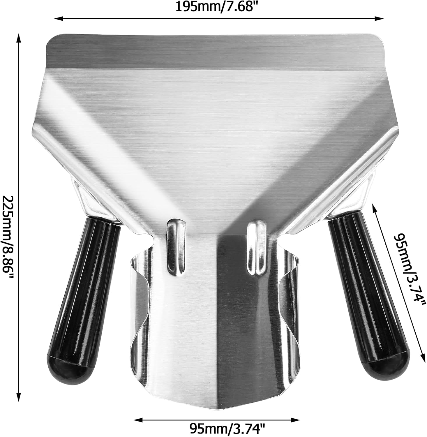 Stainless Steel French Fry Popcorn Scoop, Quick Fill Tool for Food Bags & Boxes, Multipurpose Utility Scooper for Bagger French Fries, Snacks, Desserts, Ice, Dry Goods(Dual Handle)