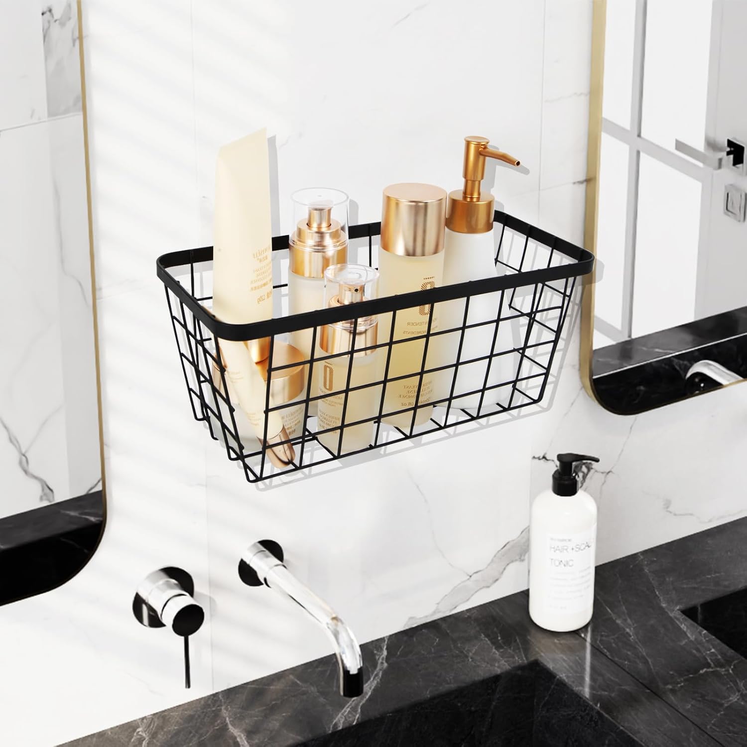 - Wall-Mounted Storage: Easily attach the organizer to your wall. The stickiness of adhesive is strong, don’t worry about the Wire basket moving easily. No drilling required, easy installation. NOTE: Better to wait after 24 hours to use it. The basket has holes reserved for screws, you can buy screws to install according to your needs, or you can install them on the Pegboard.