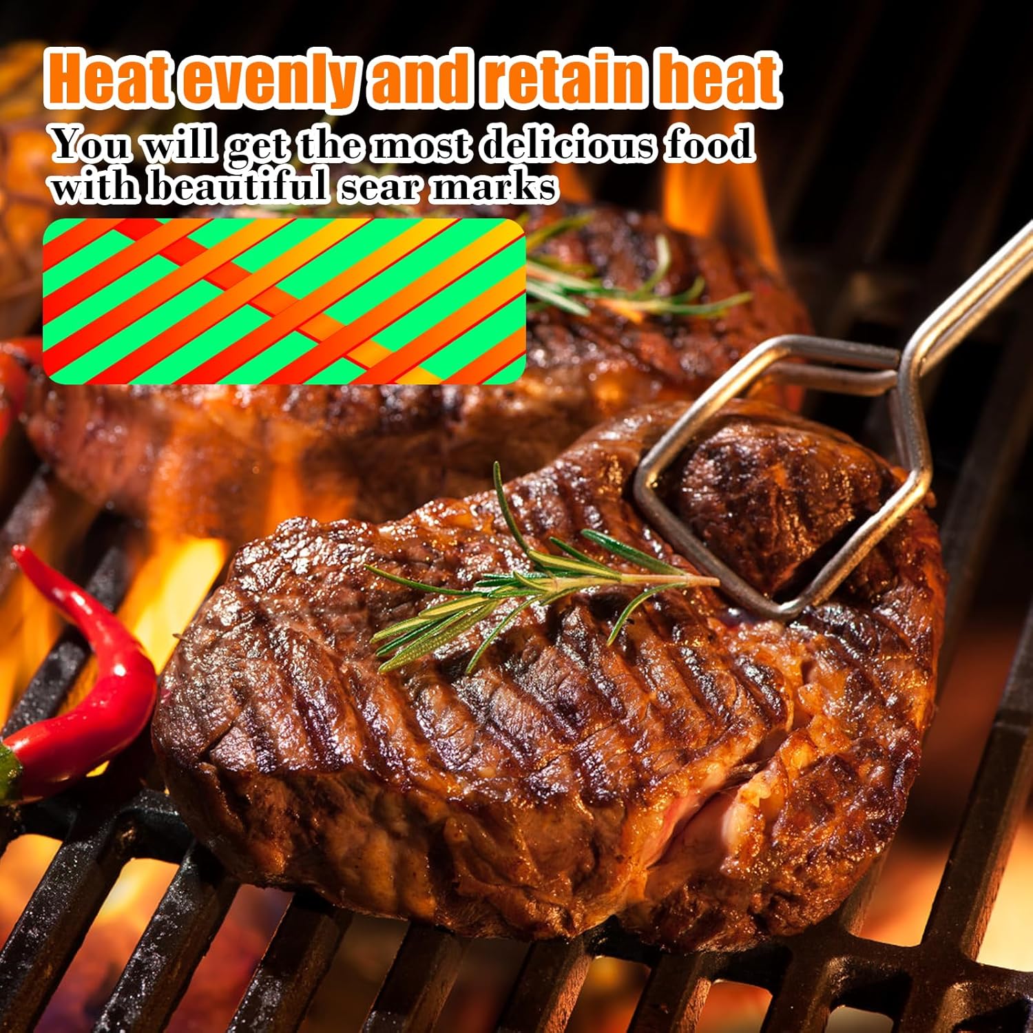 - 🔥【Enhanced Grilling Design】Flat, wide slats with smaller gaps between the rods prevent food from falling through while delivering excellent food release. Pre-seasoned and ready to use, these grates help you achieve perfectly seared, professional-looking results every time, whether grilling steak, vegetables, or burgers