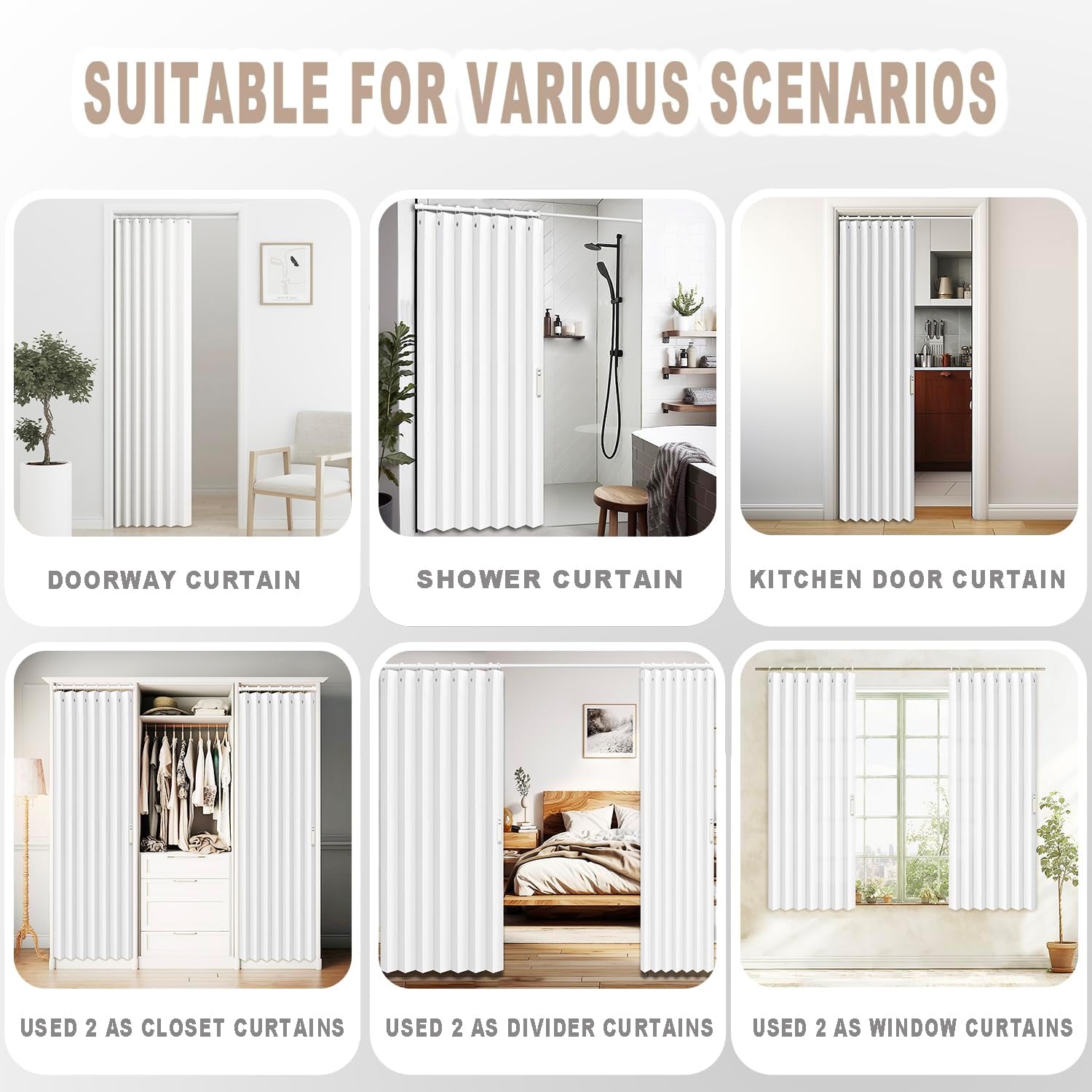 - Versatile Uses: Use it as a room divider, small shower curtain, bedroom blackout curtain, kitchen door curtain, or window curtains. It's also a great alternative for closet doors, accordion doors, folding doors, vertical blinds, and bedroom doors