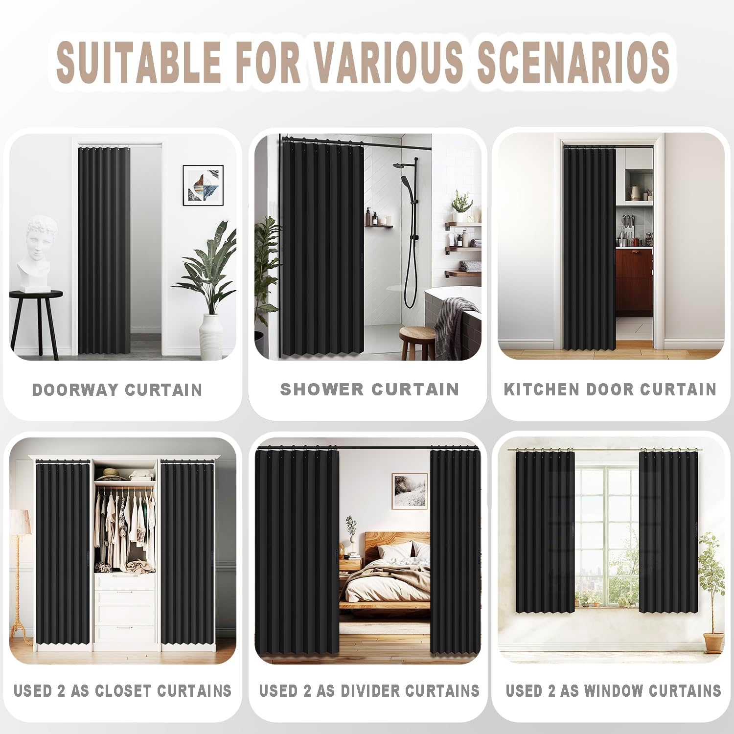 - Versatile Uses: Use it as a room divider, small shower curtain, bedroom blackout curtain, kitchen door curtain, or window curtains. It's also a great alternative for closet doors, accordion doors, folding doors, vertical blinds, and bedroom doors
