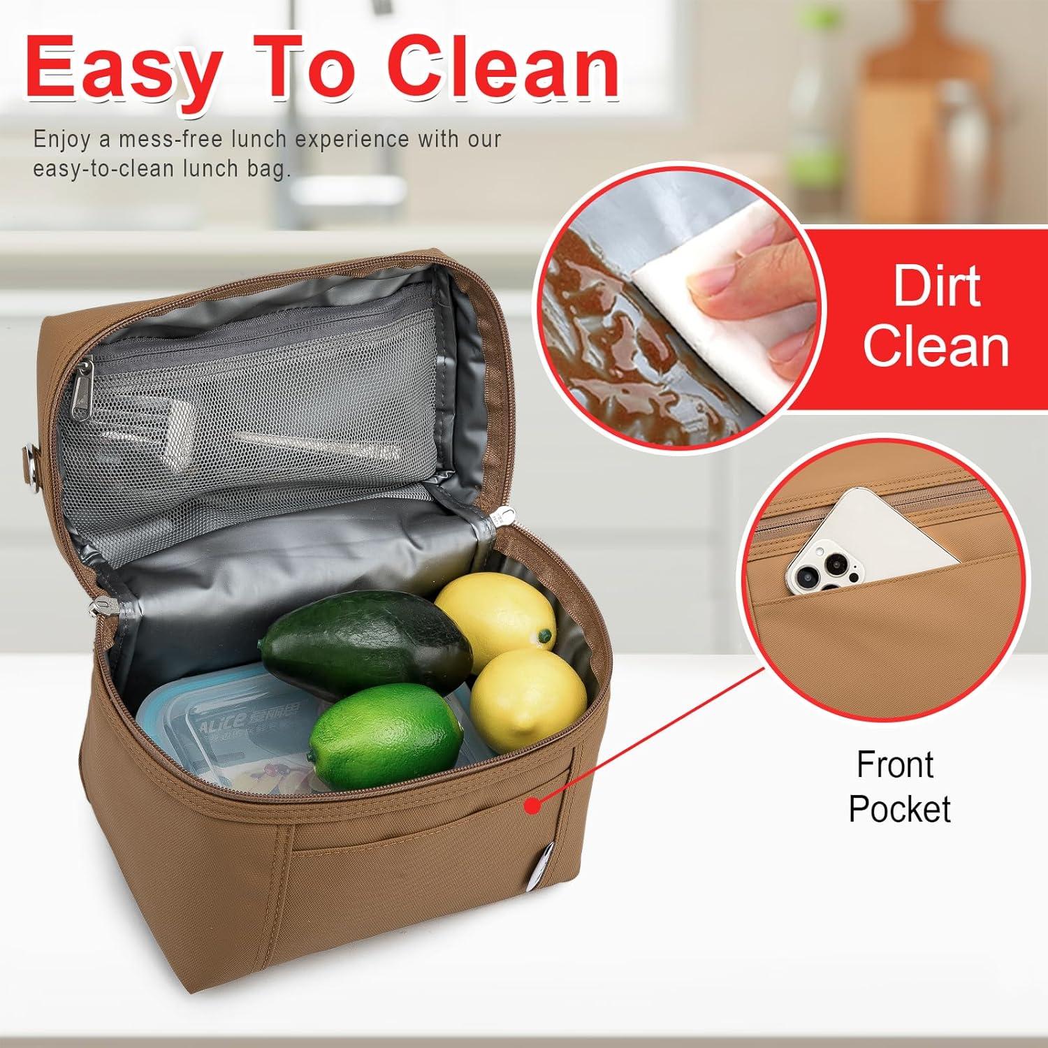 NOL Natural Organic Lifestyle Insulated Lunch Bags for Women Cooler Bag Lightweight Nylon Waterproof Lunch Box For Work (Medium(normal),Brown