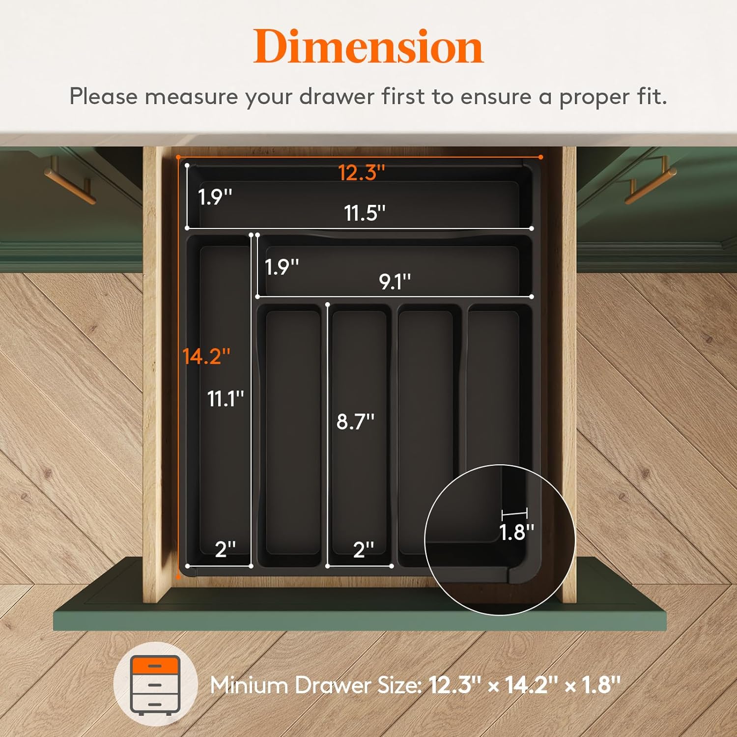 - Fit Most Drawers: Measuring 12.3" x 14.2" x 1.8" (31.2 x 36.1 x 4.6 cm), the Lifewit silverware organizer easily fits in most standard and small-sized drawers. This universal utensil drawer organizer helps you maximize storage space efficiently while keeping your utensils neatly organized and easily accessible