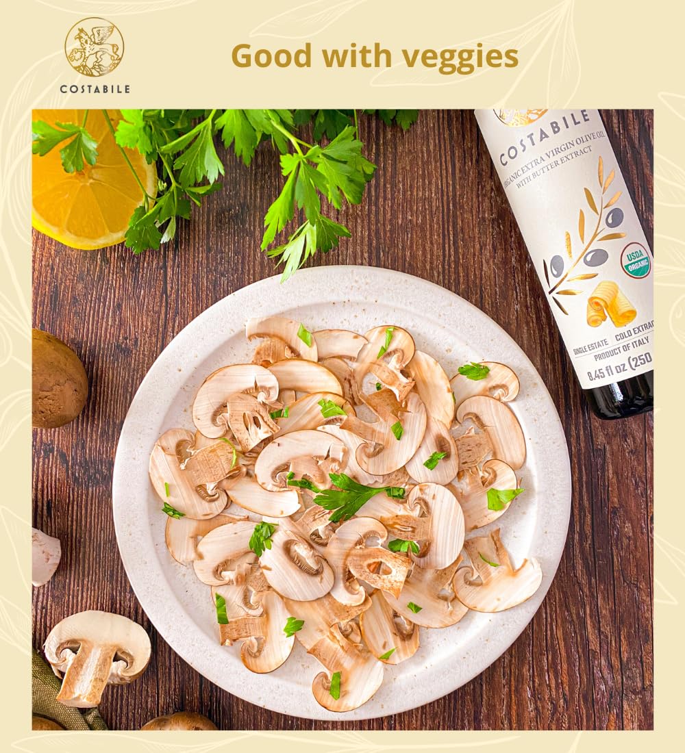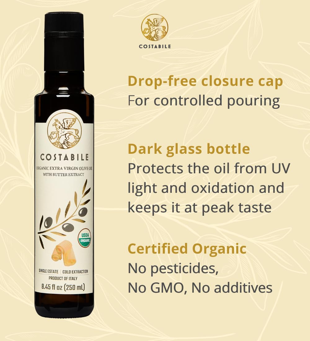 Butter Flavored Olive Oil from Italy - Organic Extra Virgin Butter Olive Oil Ideal for Baking, Cooking and Popcorn Seasoning - COSTABILE 8.45 Fl. Oz.