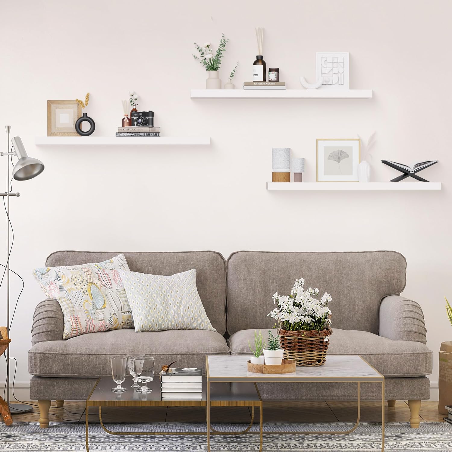 - AESTHETIC APPEAL: Designed to create a visually striking "floating" effect, the concealed mounting system enhances the aesthetic appeal of any room. These sleek and modern shelves not only serve a functional purpose but also add a touch of elegance to your space.