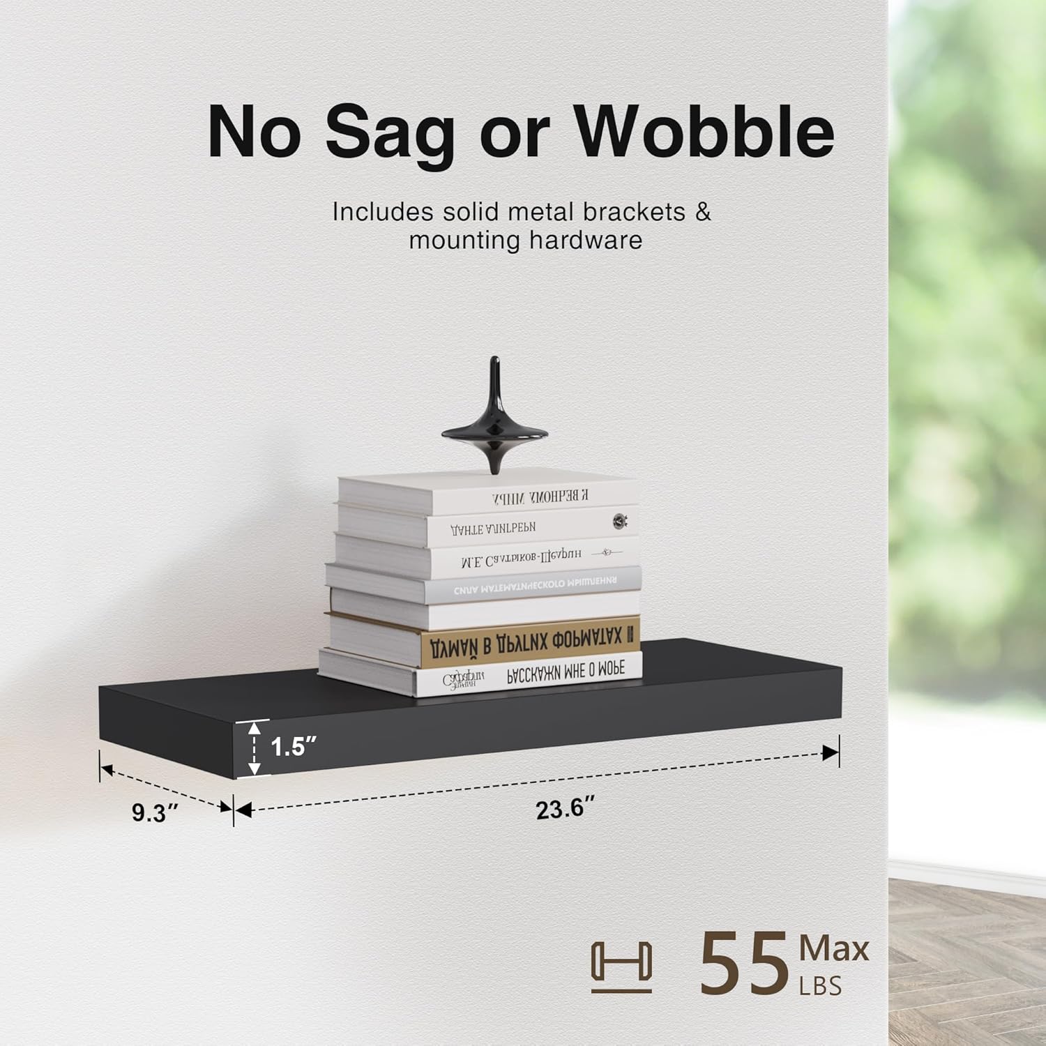 - VERSATILE AND STYLISH DESIGN: Elevate your space with our wall shelves available in wood, black, and white. These floating shelves come in three sizes (15 inches, 24 inches, and 36 inches) and feature a natural wood texture that blends seamlessly with any decor style.