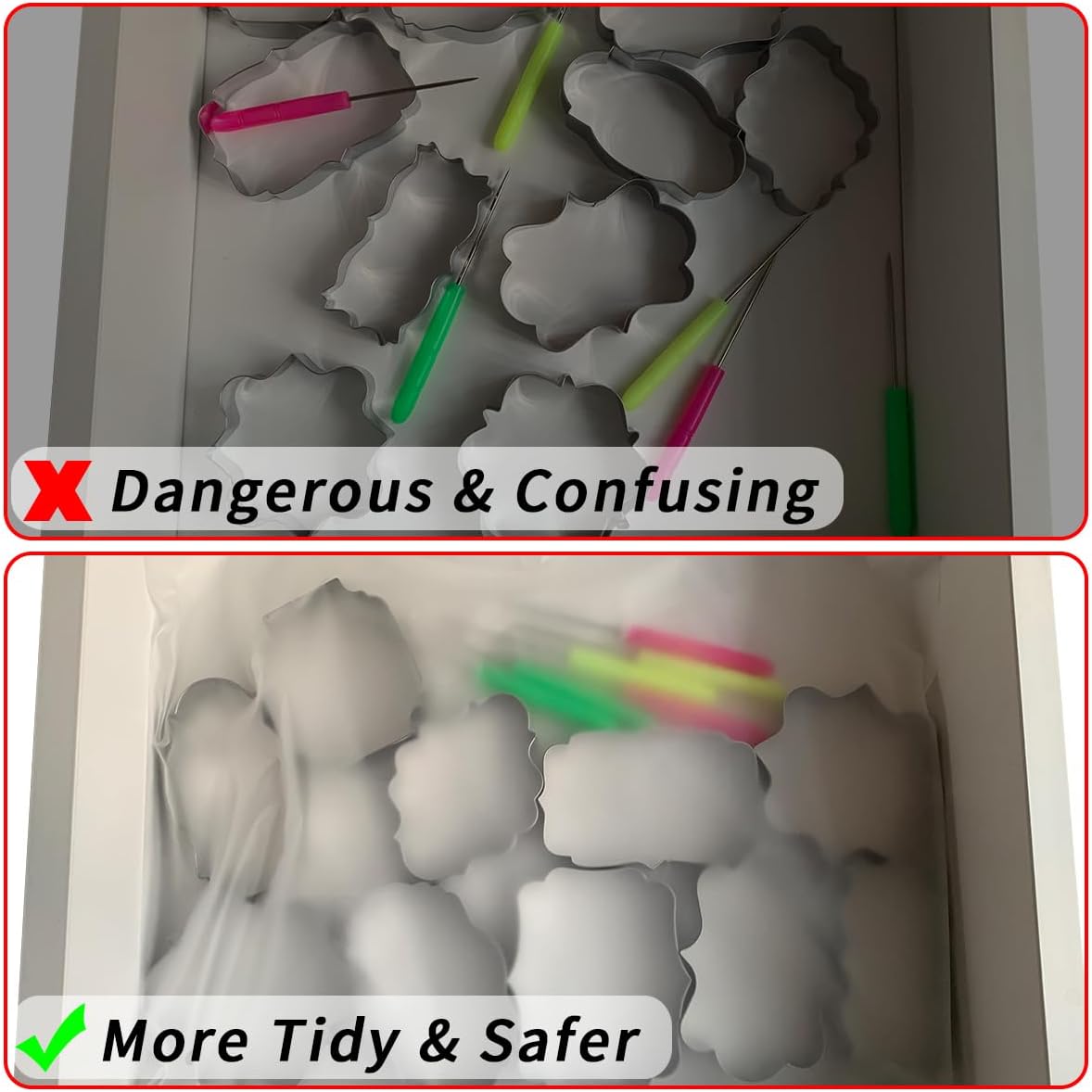 - 【Baking Tool Storage Bag】: It would be dangerous to leave cookie cutters and mixing needles in the kitchen or drawers. The included EVA storage bag will store them to ensure safety while making the kitchen and drawers more concise and organized. You can also use this bag to store other small baking tools at the same time.