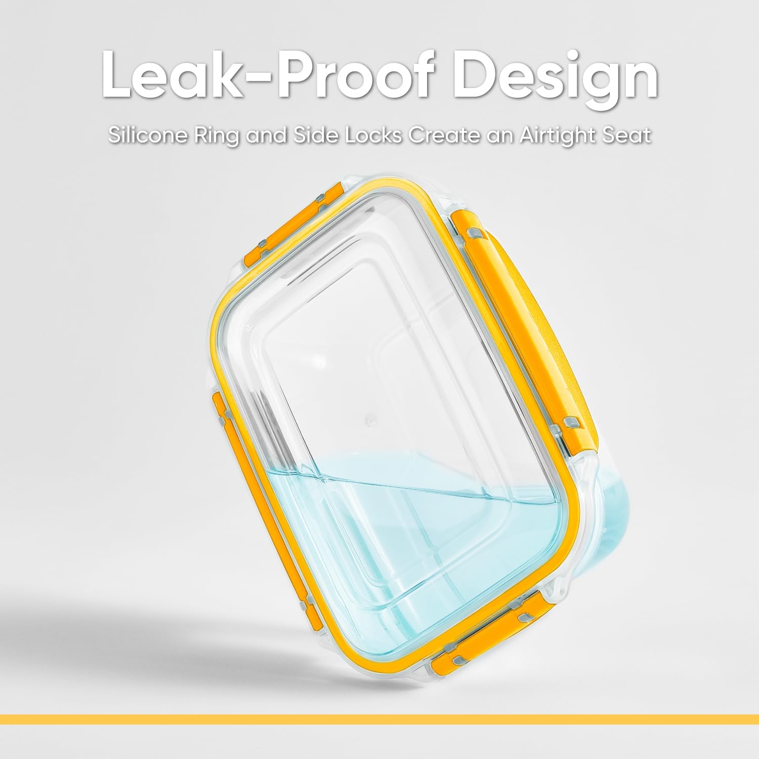 Superio Plastic Food Storage Containers with Airtight Lids, 4 Pack- 80 Oz, BPA Free, Leakproof, Stackable, Microwave, Dishwasher, Freezer Safe, Yellow