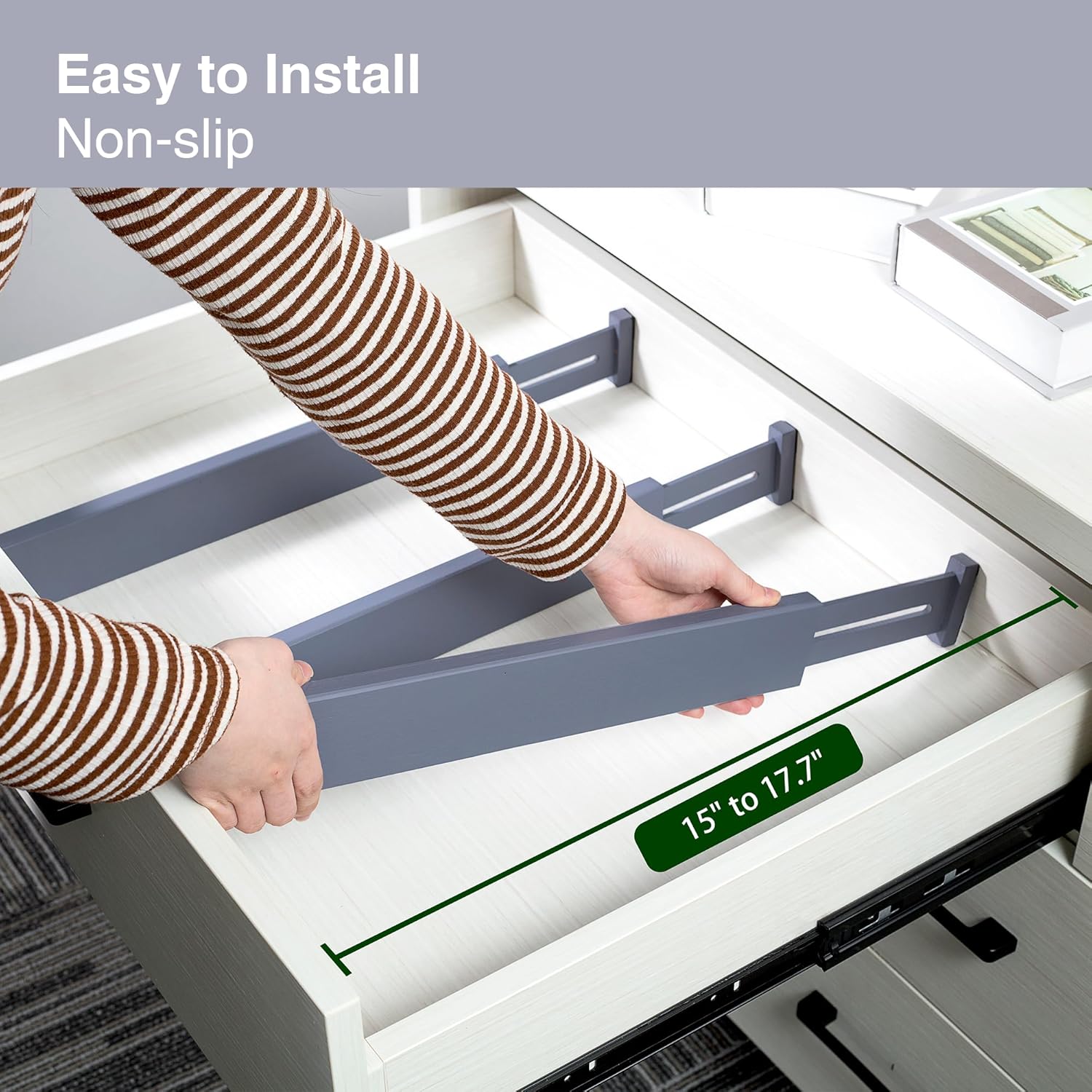 - Easy Installation & Removal: Expandable drawer divider has a built in spring to keep them in place and easy adjustment to meet your changing needs. Recommended for sturdy drawer