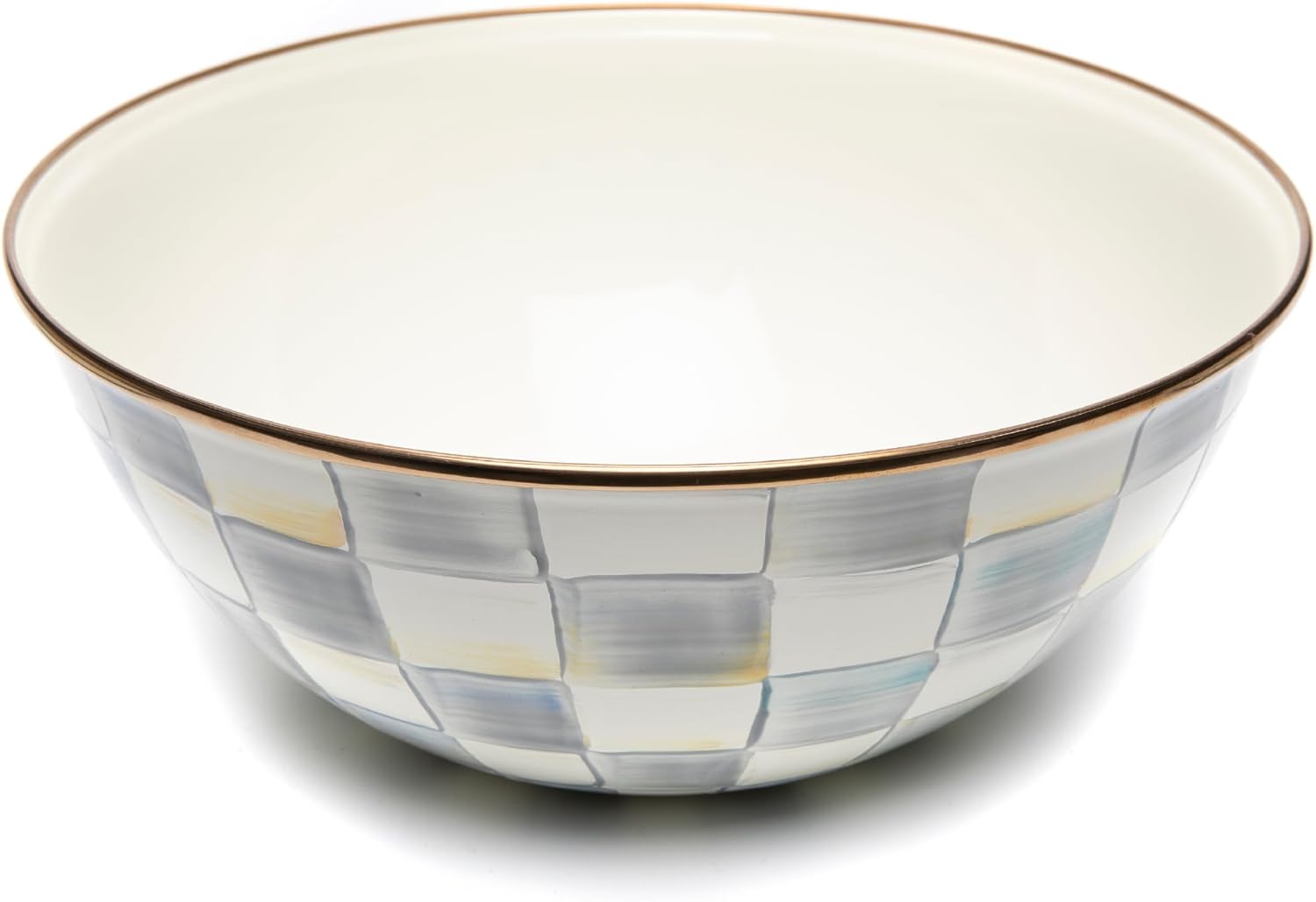 MACKENZIE-CHILDS Enamel Everyday Bowl, Serving Bowl for Entertaining, Large, Gray-and-White Sterling Check, Set of 1