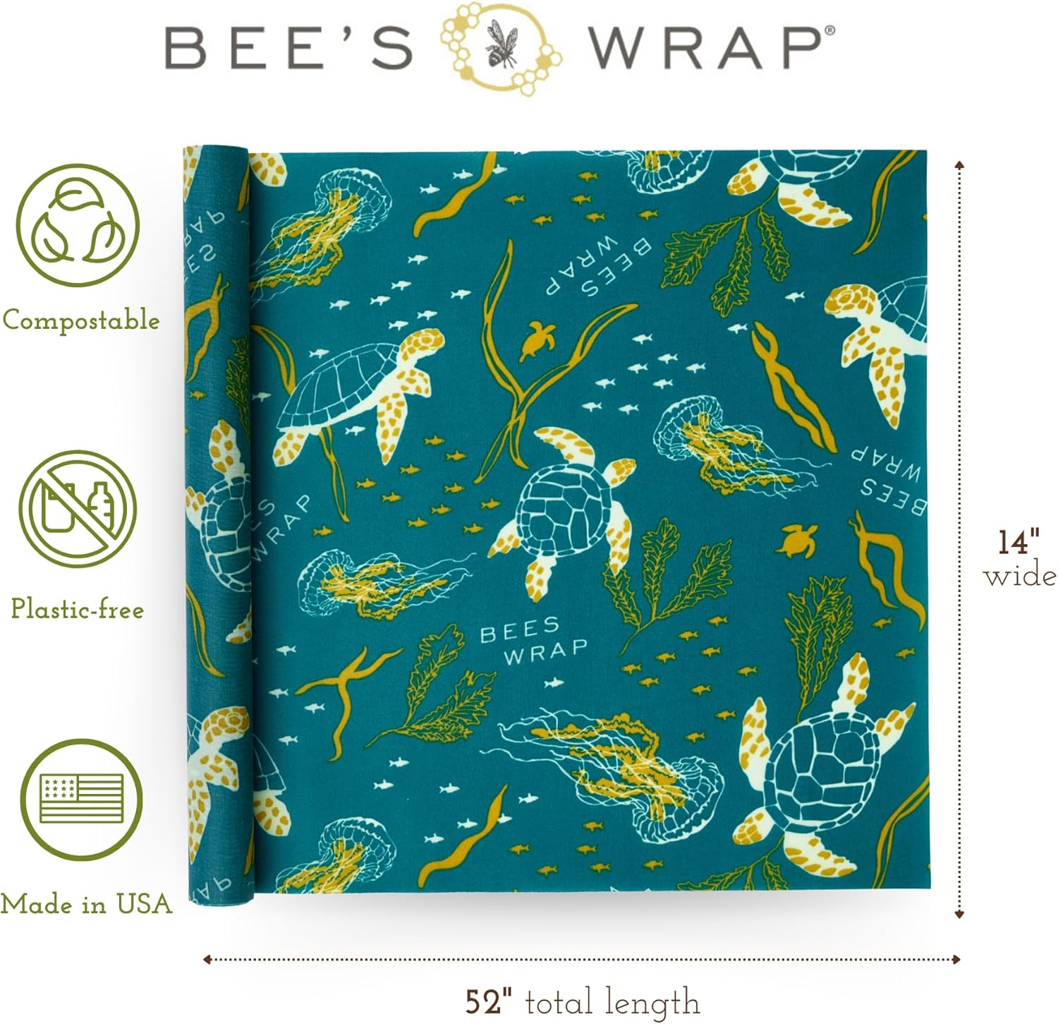 Bee's Wrap Beeswax Wraps for Food - Ocean Cut to Size 14x52" Wax Paper Roll - Made in USA Reusable Waxed Paper & Bowl Covers - Organic & Eco-Friendly Alternative to Aluminum Foil & Plastic Wrap