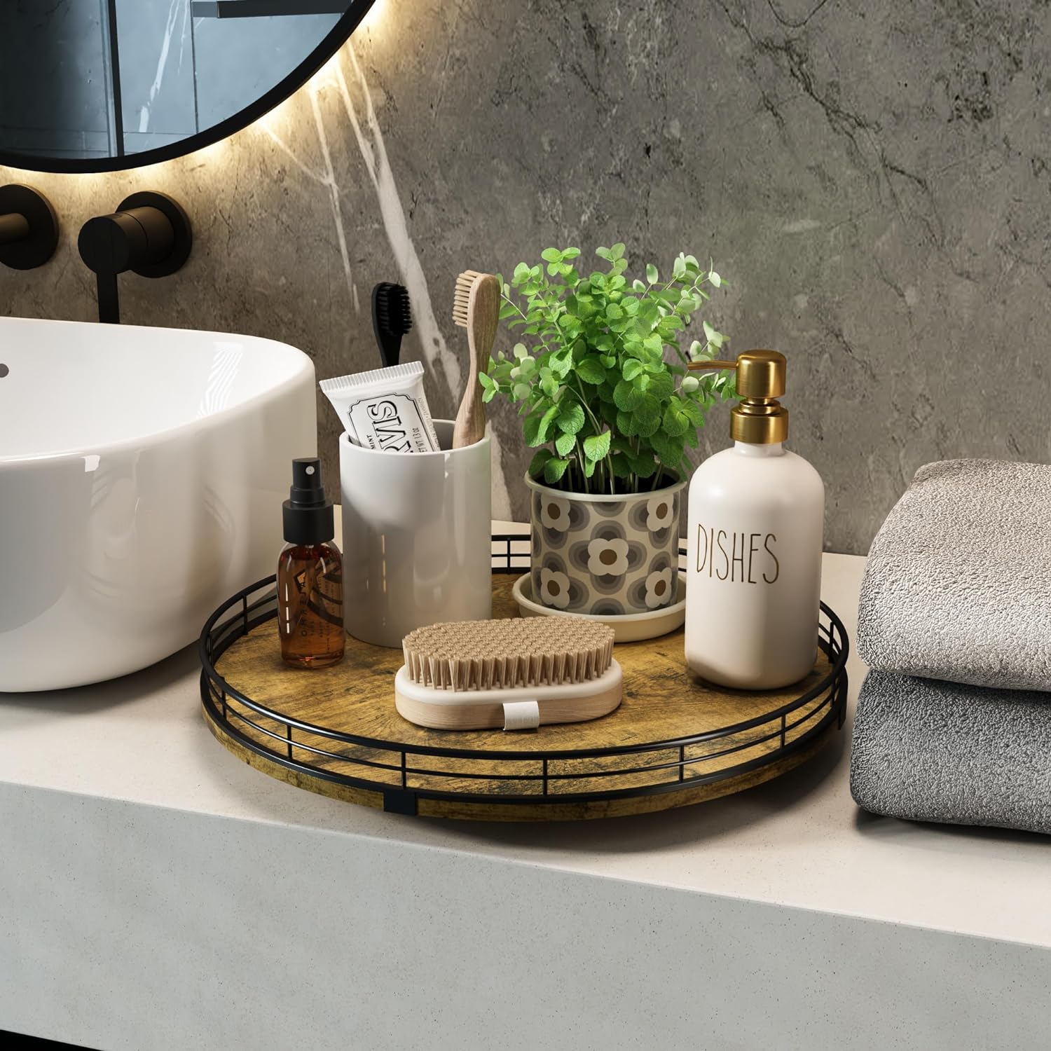 Lazy Susan Turntable Organizer for Table Top, 13’’ Round Wooden Lazy Susan for Cabinet Kitchen Countertop Pantry Dining Coffee Table for Condiments Spices, Rustic Bathroom Vanity Tray for Soap Candle