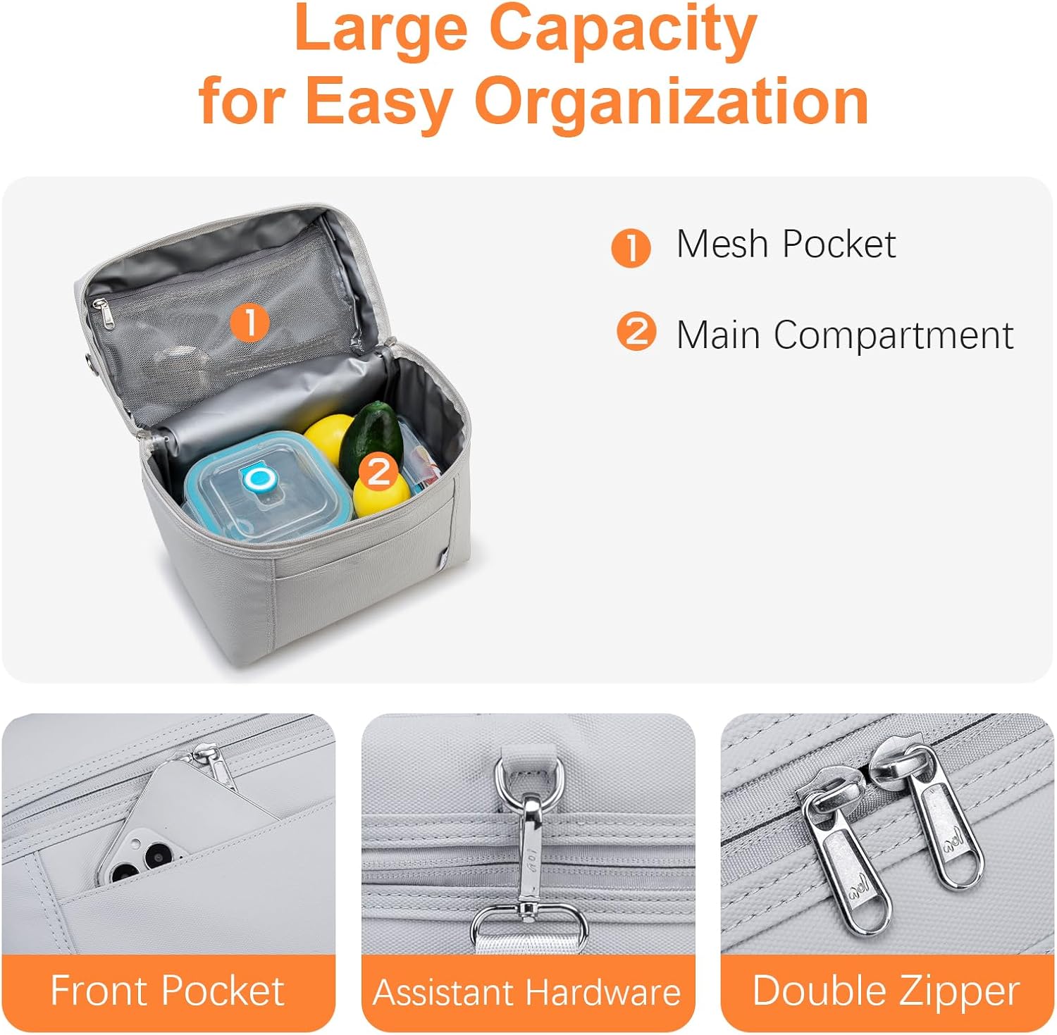 - Construction & Pockets: 1 main compartment with zipper closure(double zips in YKK), 1 interior zip mesh pocket can fit paper napkin, handkerchief, keys, or cellphone. Outside 1 insert pocket in the front of the bag for small essentials.Our lunch bags for women/men is spacious enough to fit your lunch box, snacks, and drinks and prefect to take foods and snacks with your outdoor activities.