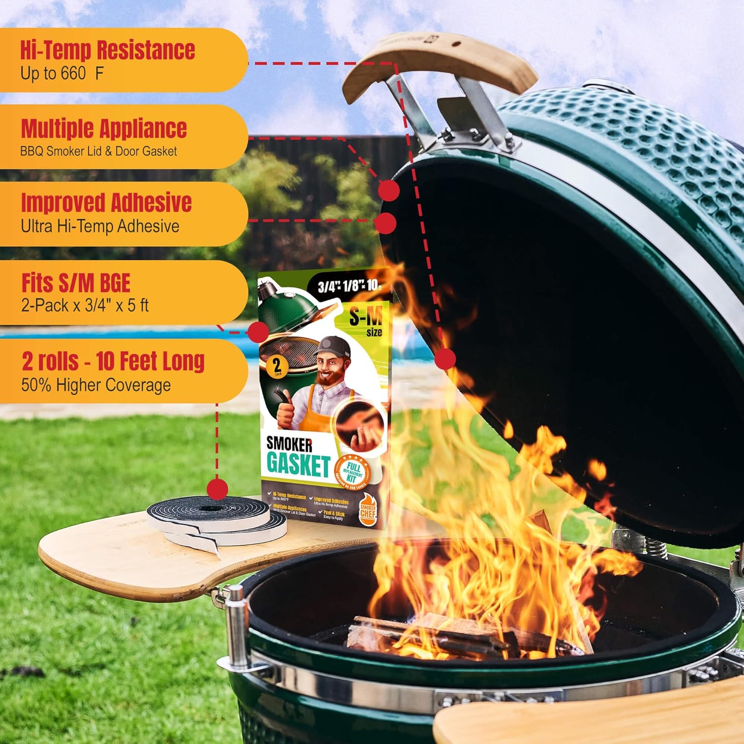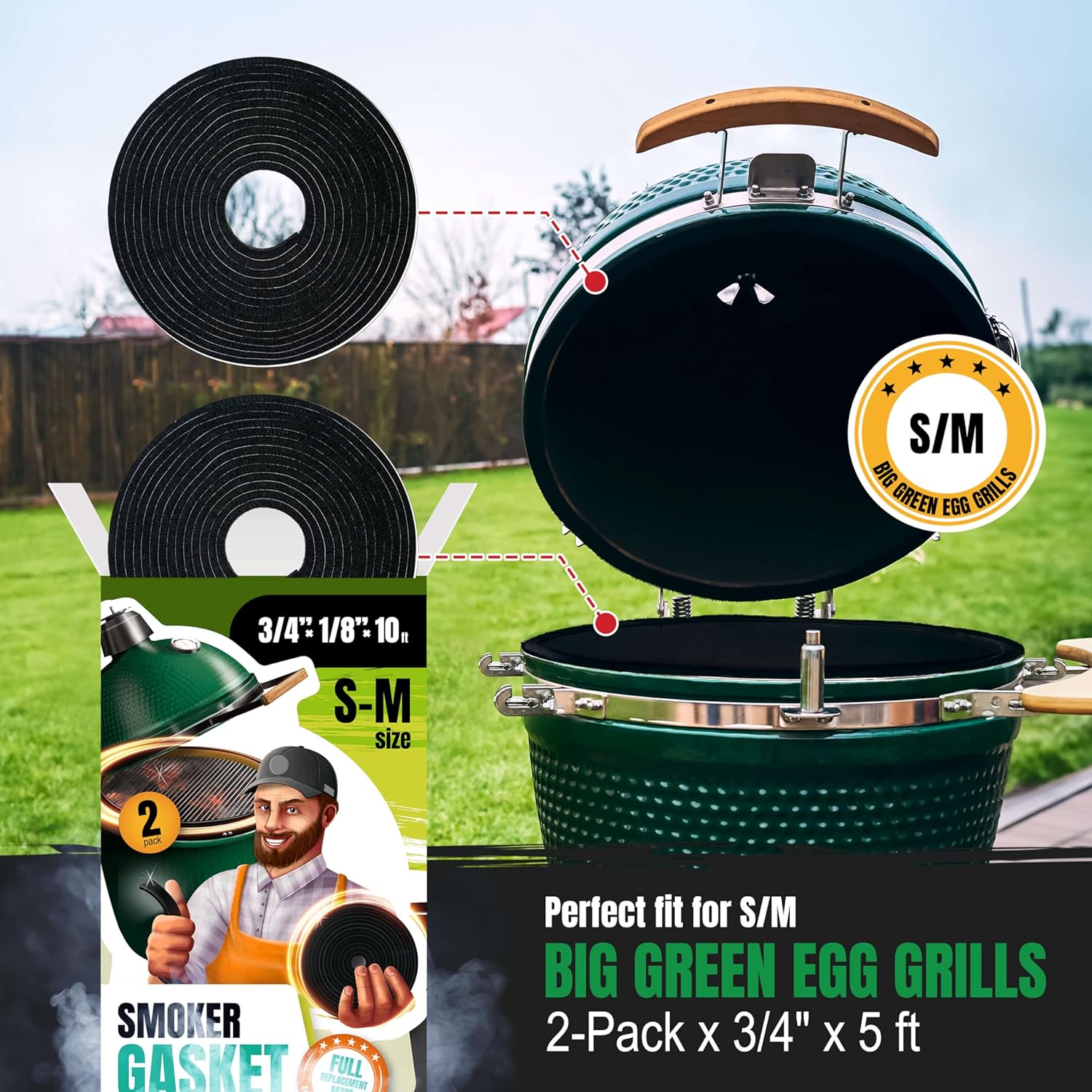 - Comprehensive Compatibility: Tailored for the Big Green Egg, our lid replacement and big green egg felt provide a universal fit for S and M grills. Enjoy improved cooking results with our premium BBQ big green egg replacement gasket by Smoker Chef.