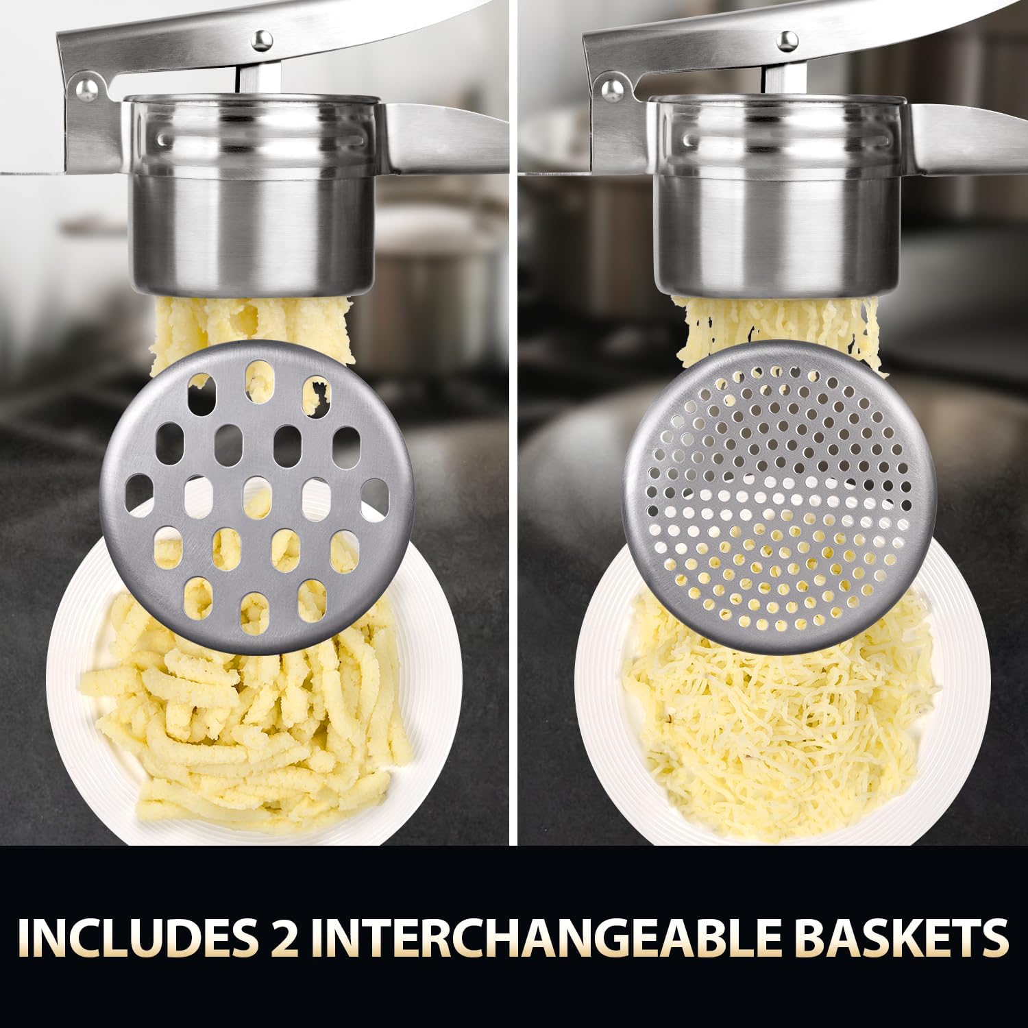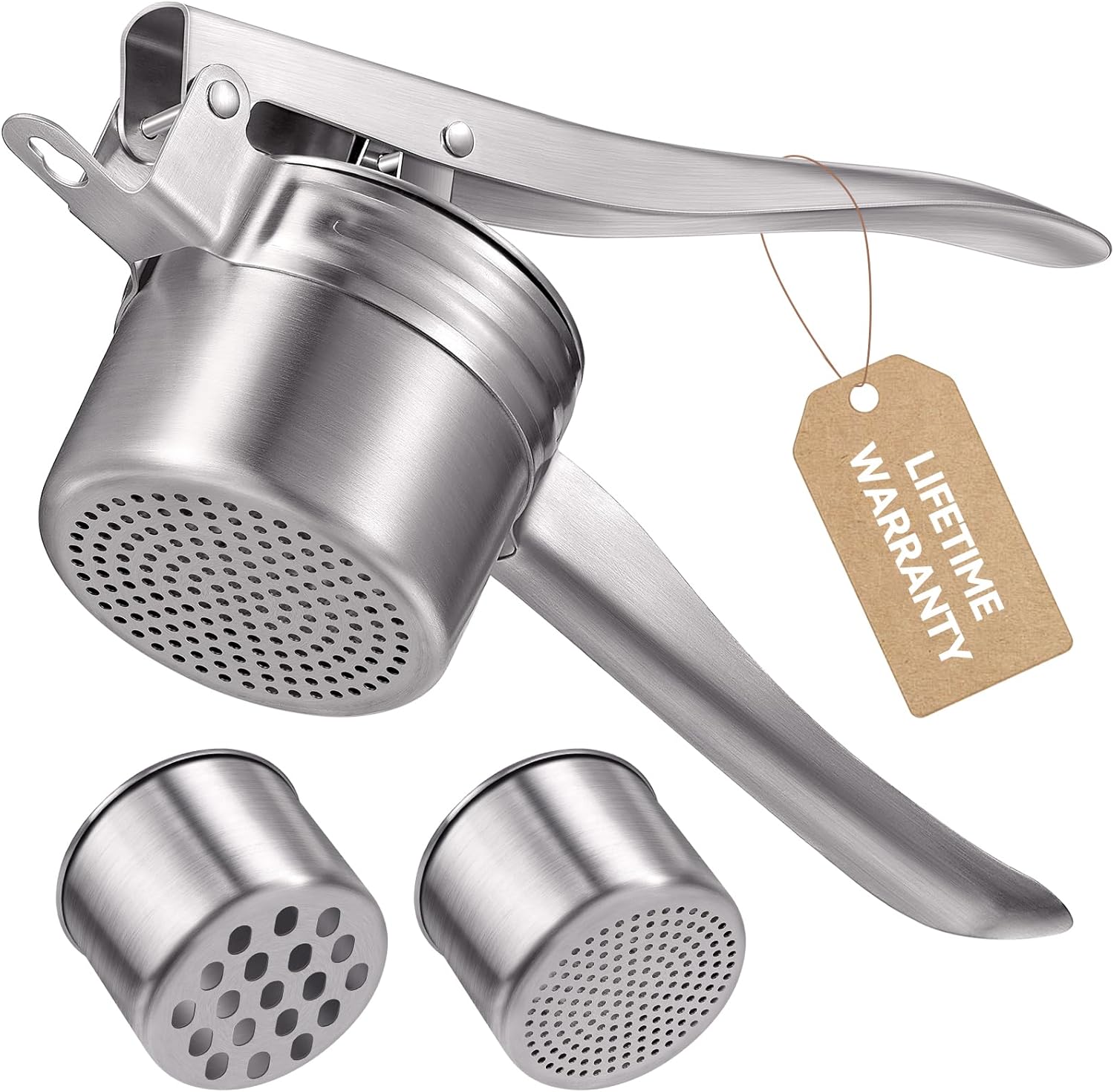 Potato Ricer, Sopito Upgraded Stainless Steel Potato Masher with 2 Interchangeable Cups Heavy Duty Kitchen Tool