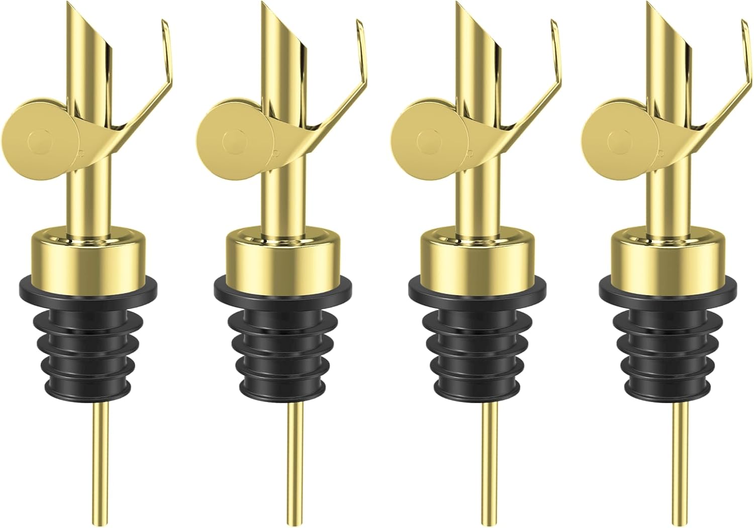 Olive Oil Dispenser Spout, Weighted Liquor Pour Spout, Syrup Dispenser Spout, Stainless Steel Automatic Pour Spouts for Liquor Bottles, Oil Bottles, Vinegar, Syrup and Alcohol 4 Pack Golden