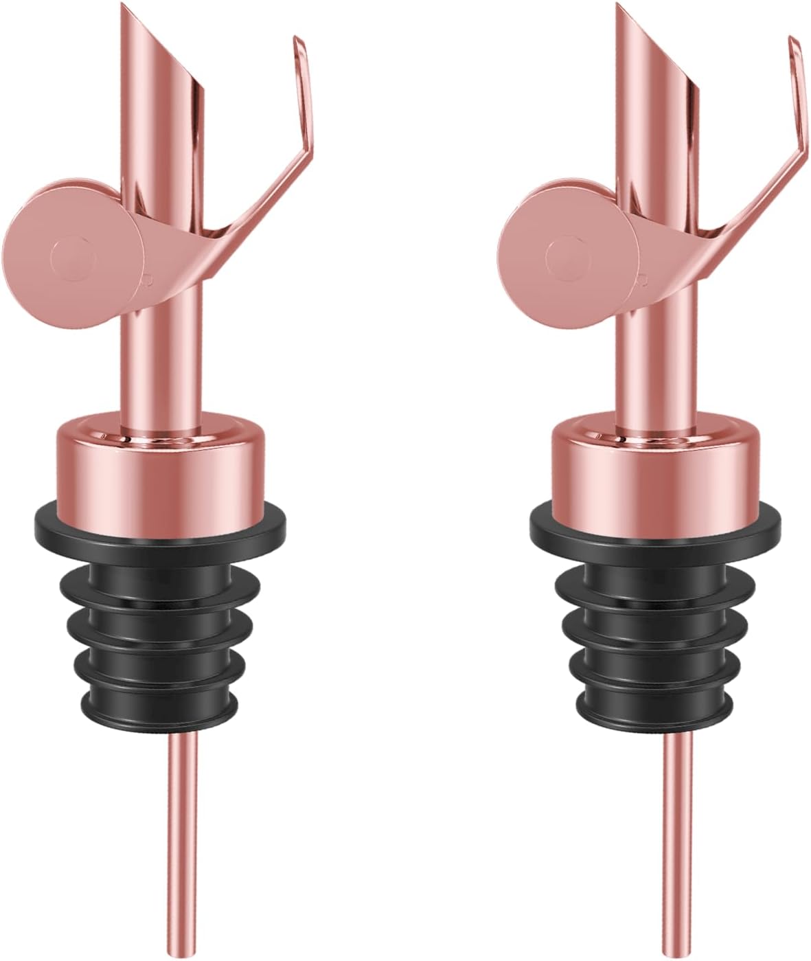 Olive Oil Dispenser Spout, Weighted Liquor Pour Spout, Dispenser Spout, Stainless Steel Automatic Pour Spouts for Liquor Bottles, Oil Bottles, Vinegar, Syrup and Alcohol 2 Pack Rose Golden