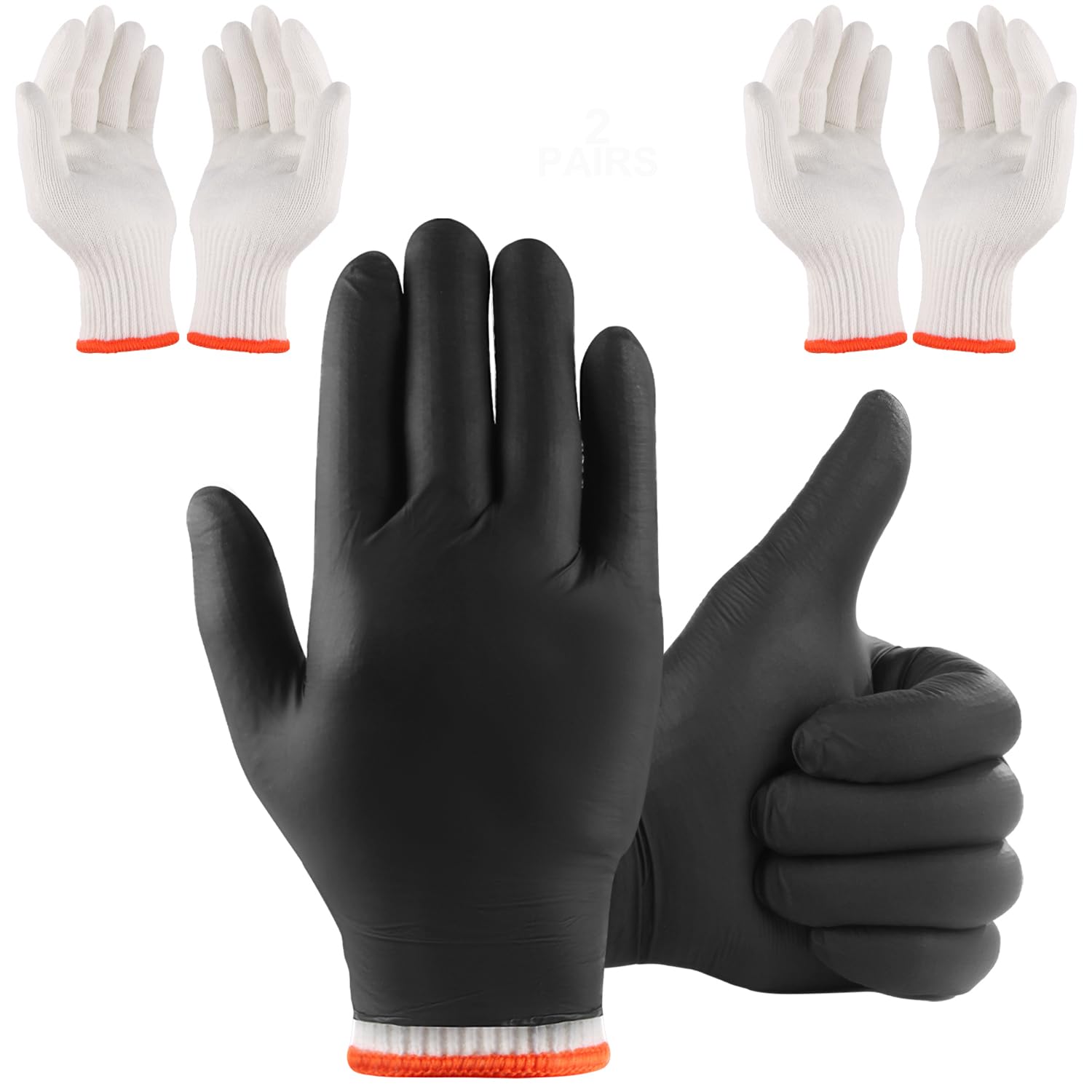 BBQ Gloves for Cooking Baking Grilling, 100 Count Disposable Nitrile Gloves and 4 Count Cotton Glove Liners Washable (6mil Nitrile, Large)