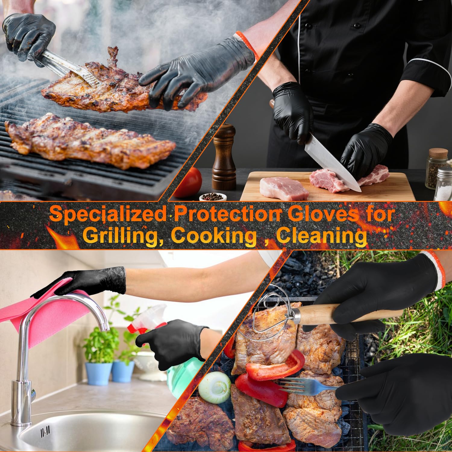 - Versatile for Grilling, Cooking or More:Engineered to outperform standard barbecue gloves, our nitrile gloves resist sharp tools, hot surfaces, and tough jobs. Perfect for professional chefs, food handlers, cleaning crews, and gardeners, they offer flexible protection for grilling, smoking, and household chores