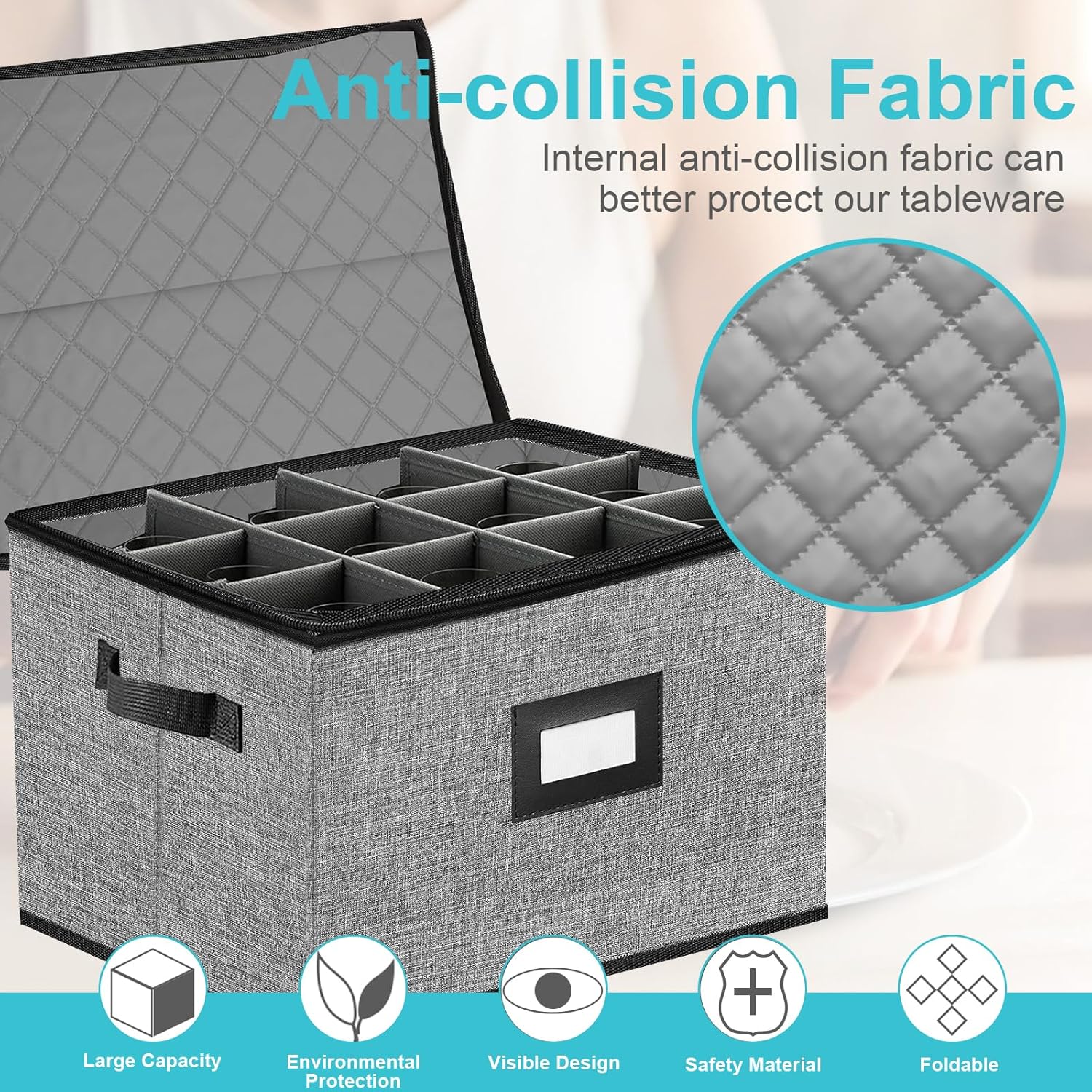 - Quilted Wine Glass Storage Box:The plate storage box has a cushioned cotton structure around the inside and on the top, which can effectively prevent your plates from bumping during transportation.