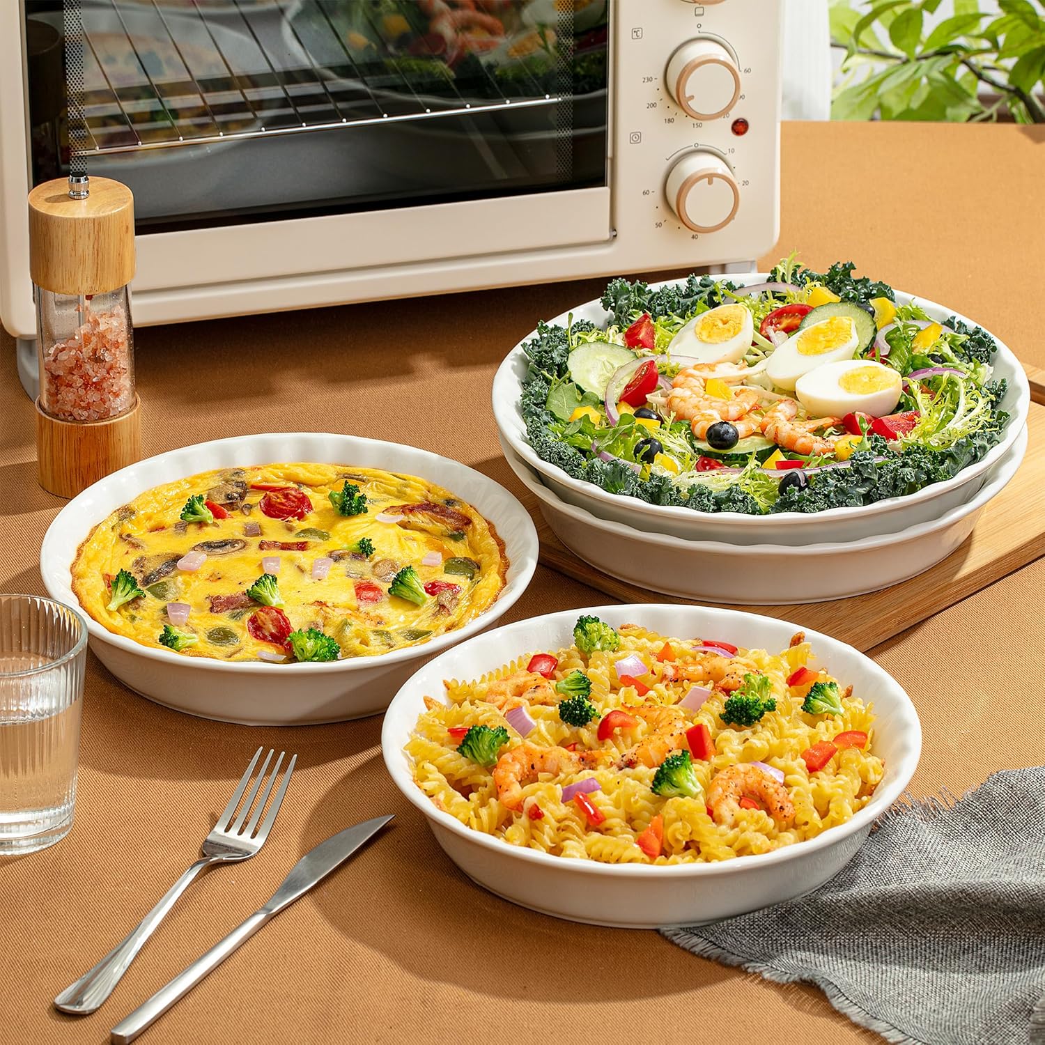 - These pie dishes are microwave, oven, and dishwasher safe, making them convenient for cooking, reheating, and easy cleanup.