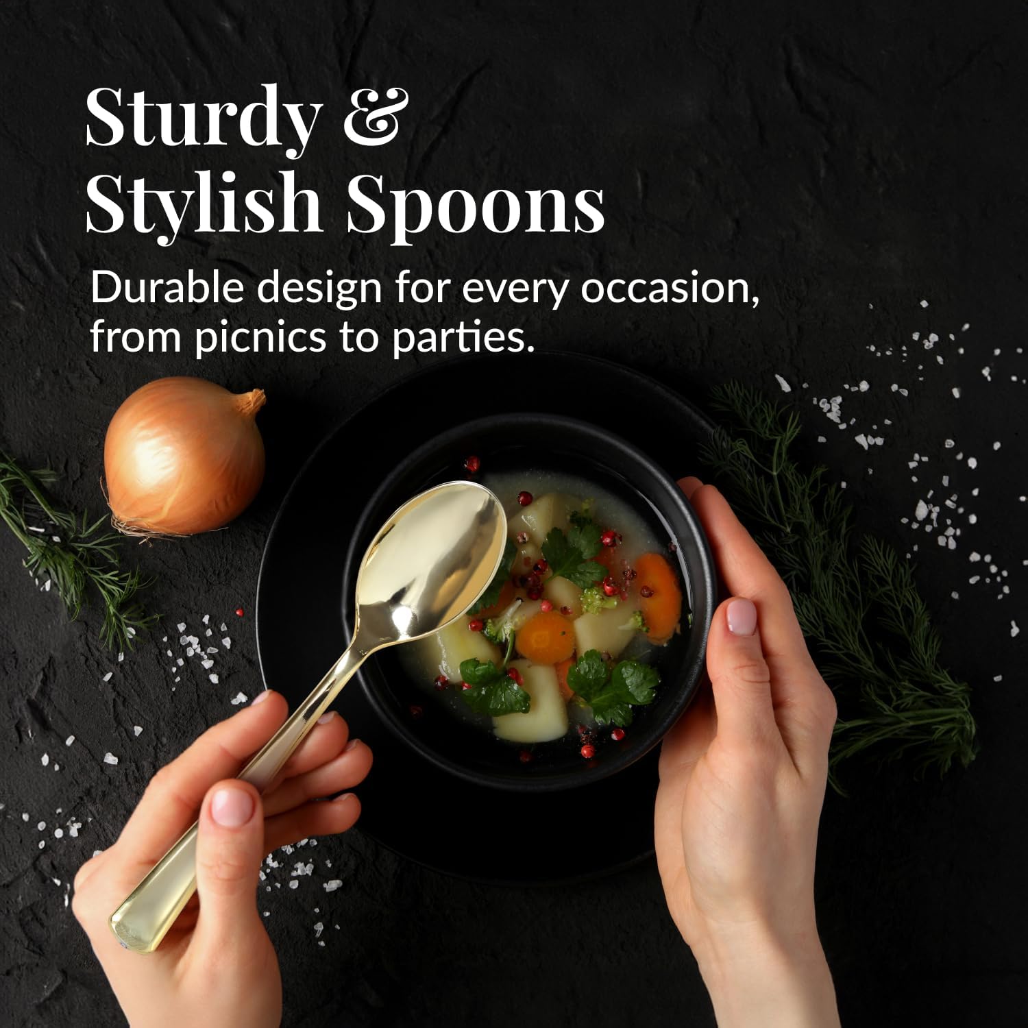 - Versatile Use: Sturdy disposable spoons for weddings, birthdays, holiday dinners, picnics, and office events; combines well with other plastic forks and spoons for a complete setup