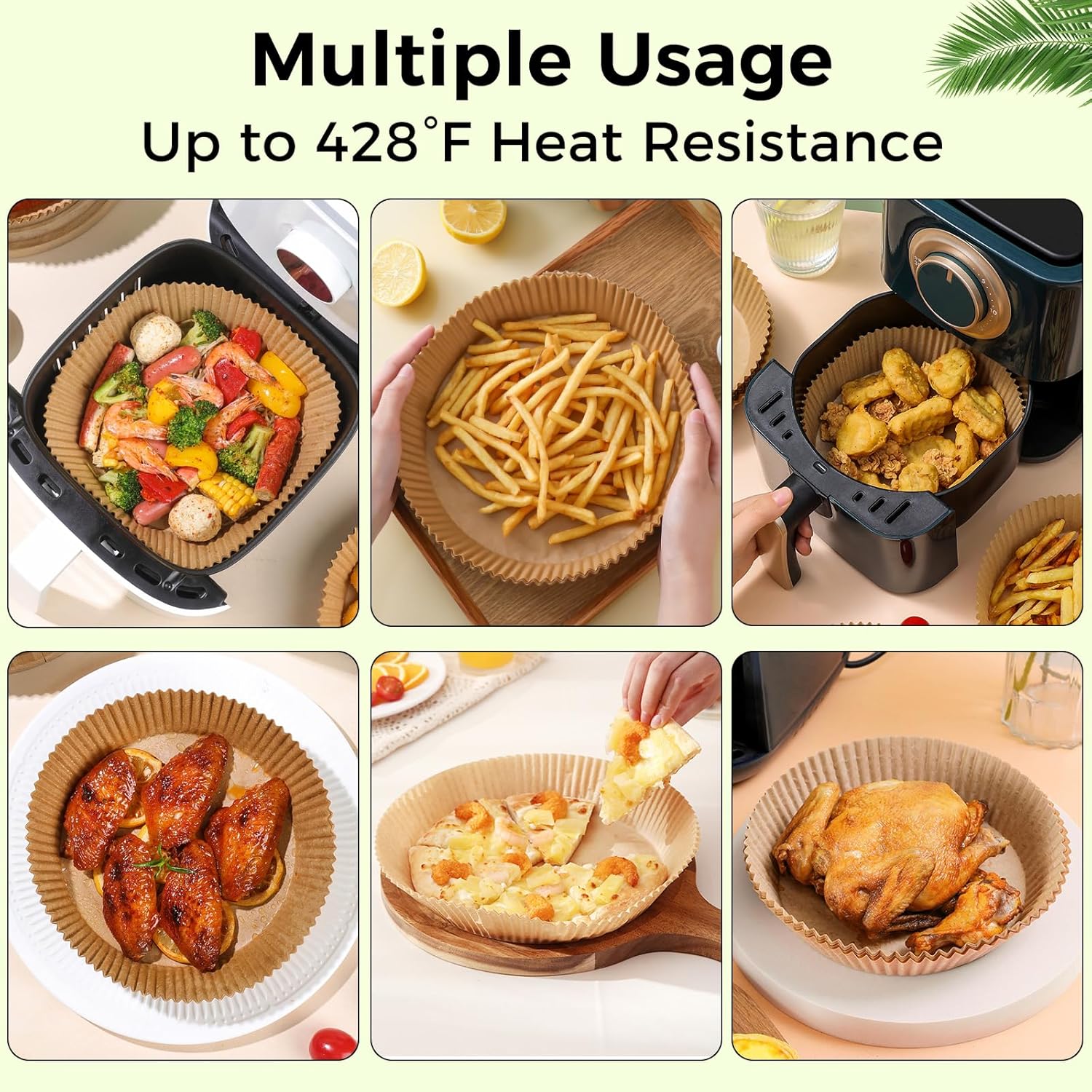 - Widely Used: These disposable air fryer parchment liners are great for baking, roasting, frying or serving food, lightweight and practical. Suitable for air fryers, microwave, ovens, steamers, etc. Just throw away the parchment liners after use.