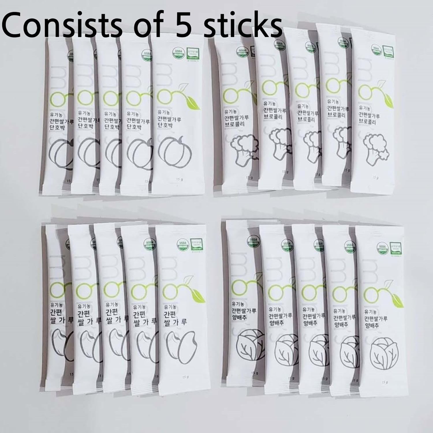 mom's Organic Simple Rice Powder Korean Rice Flour for Soup, Congee (Rice + Cabbage) 15g*5stick/box