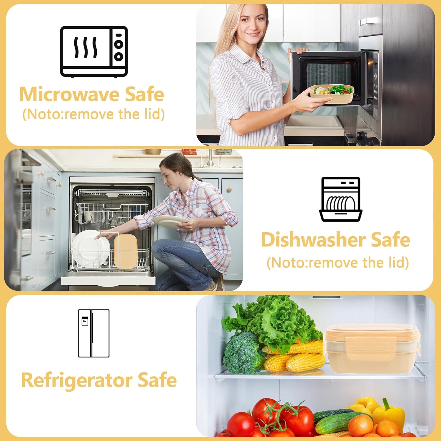 - Food-Grade Materials for Healthy Eating: Our lunch containers is made of high-quality food-grade PP+PE materials, ensuring it is free from BPA. It is safe to use in the microwave, refrigerator, and dishwasher (excluding the lid). Choose a healthier option for you and your family with our dedicated design