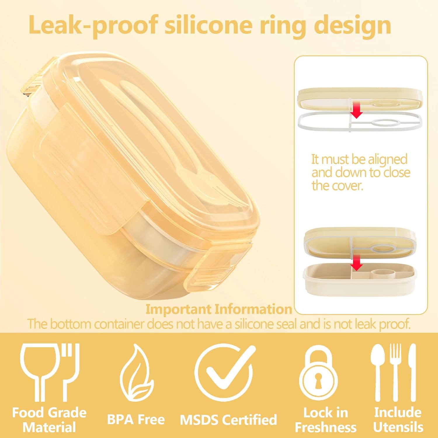 - Leak-Proof and Easy to Clean: Equipped with high-quality silicone sealing components and 4 reinforced locking clips, our bento box guarantees leak-proof performance, preventing any liquid leaks during travel. Cleaning is a breeze, ensuring convenience for your busy lifestyle
