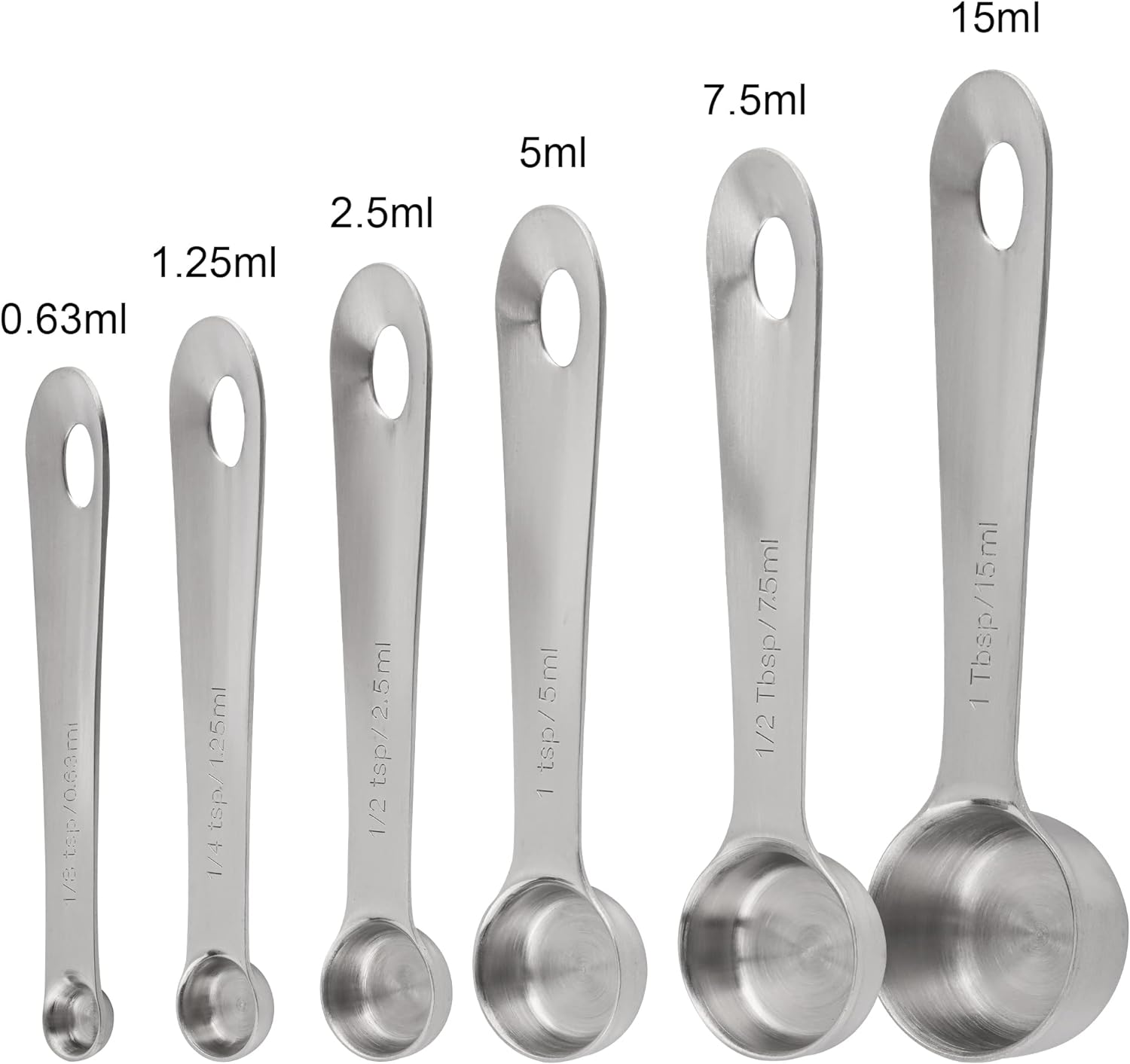 Measuring Spoons Set, 18/8 Stainless Steel Measuring Spoons Set 6, Metal Measuring Spoons for Baking, Both Imperial & Metric Measuring Spoons for Liquid & Dry, Nesting Kitchen Measuring Tools