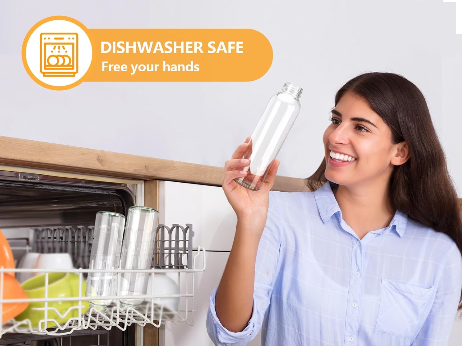 - DISHWASHER SAFE AND EASY OF USE: The easy care, dishwasher safe Zukro 24 oz glass juice bottles set will surely please you! We focus on every detail of our products and safe packaging. If, for any reason, you are not 100% satisfied with the juicer bottles, Please contact us