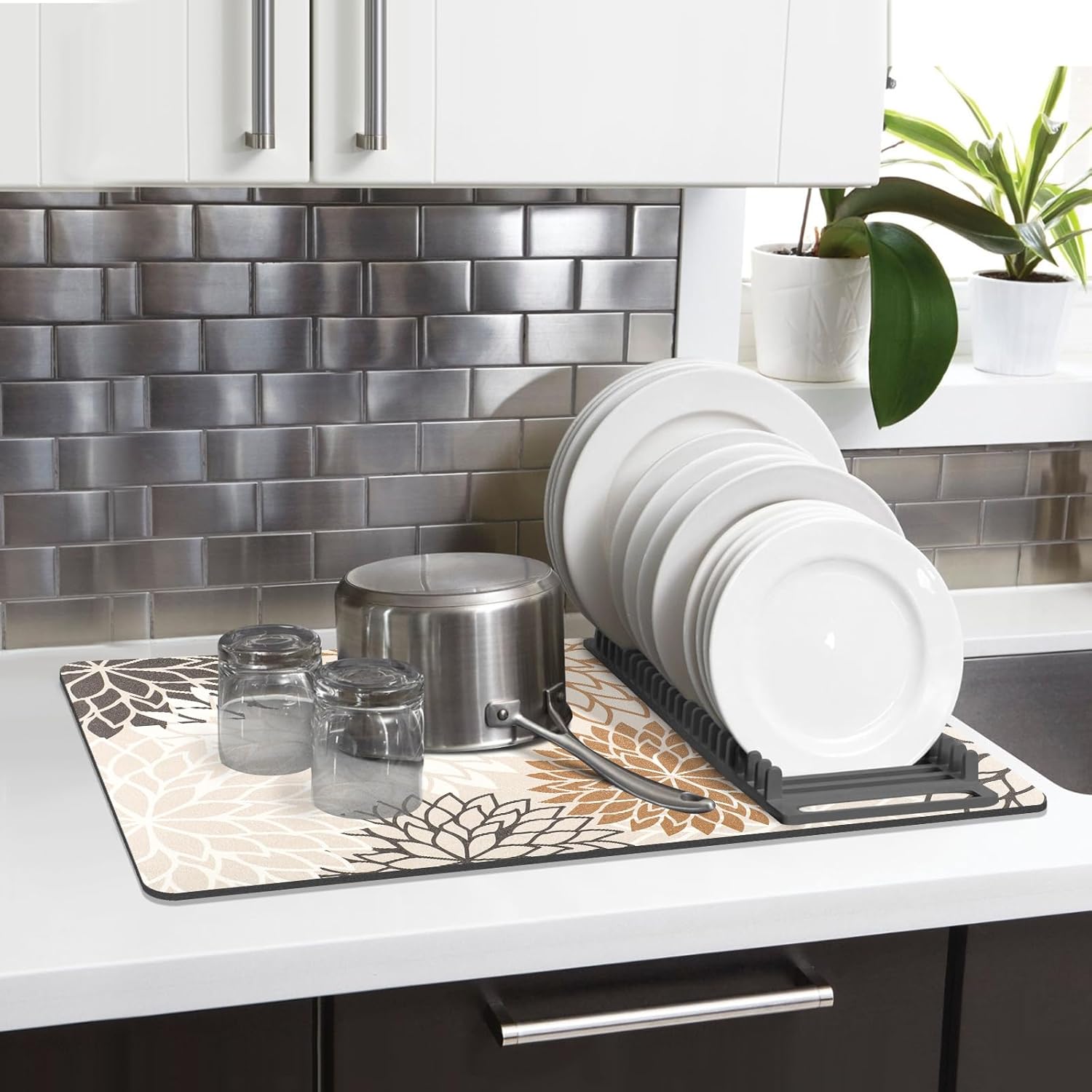 - 【Innovative Design】The dish drying mats by Findosom feature a stylish, luxuriant flowers pattern design and are available in a variety of colors. Not only is it a drying matt kitchen counter, but you can also use it as a decorative piece that complements any kitchen decor or enhances the beauty of your coffee bar table or desk