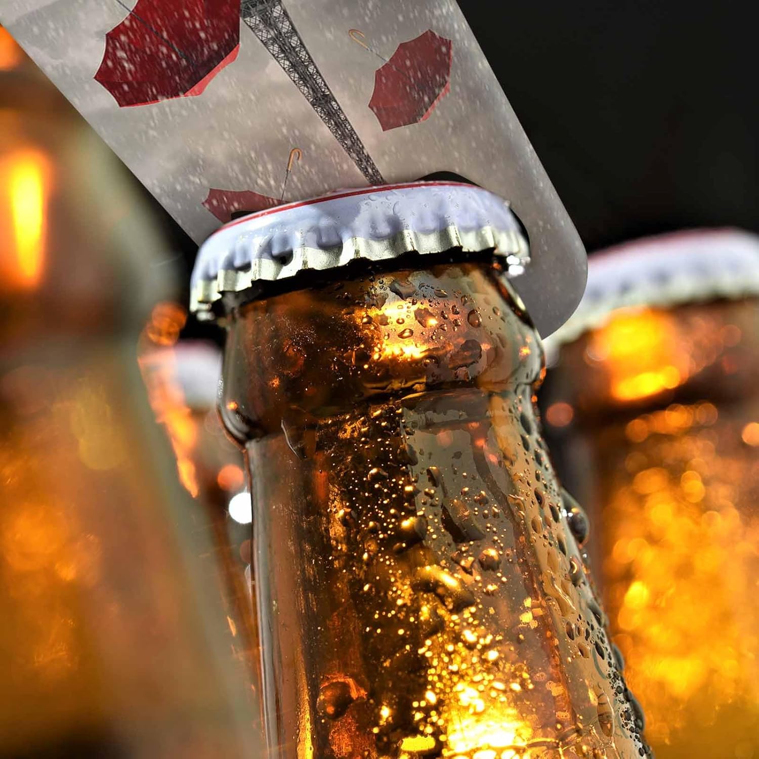 Eiffel Tower Stainless Steel Bottle Opener Raining Day Red Umbrella Black and White Street Romantic Scenic Flat Beer Bottle Opener Keychain for Home Kitchen Bar Restaurant Party Birthday Gift