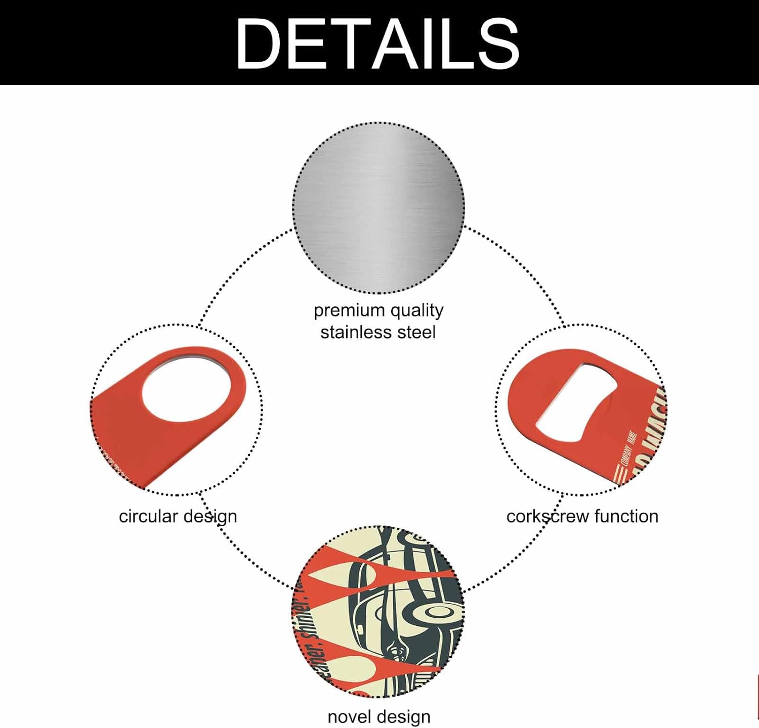 - Unique Design: Beer bottle opener is printed with double-sided printing, with multiple and interesting styles, no longer monotonous. The bottle opener is lightweight and portable, and has a round hole at the bottom of the handle for hanging, making it easy to store.