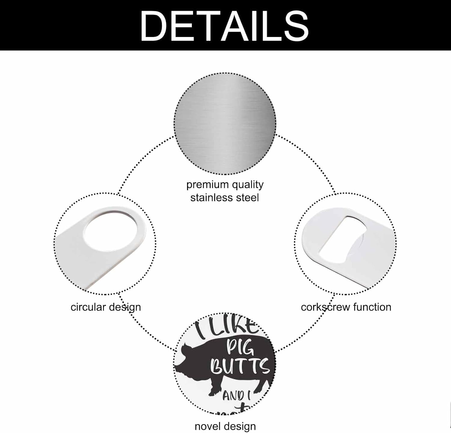 Art Design Stainless Steel Bottle Opener I Like Pig Butts and I Cannot Lie Adorable Lettering Flat Beer Bottle Opener Keychain for Home Kitchen Bar Restaurant Party Birthday Gift