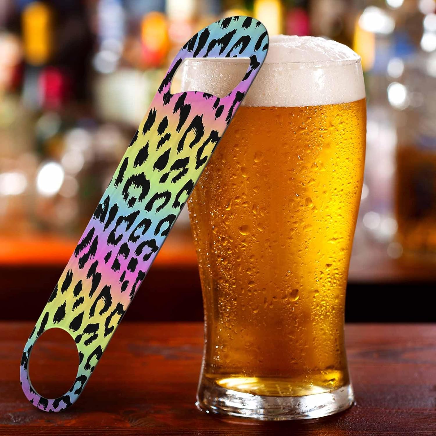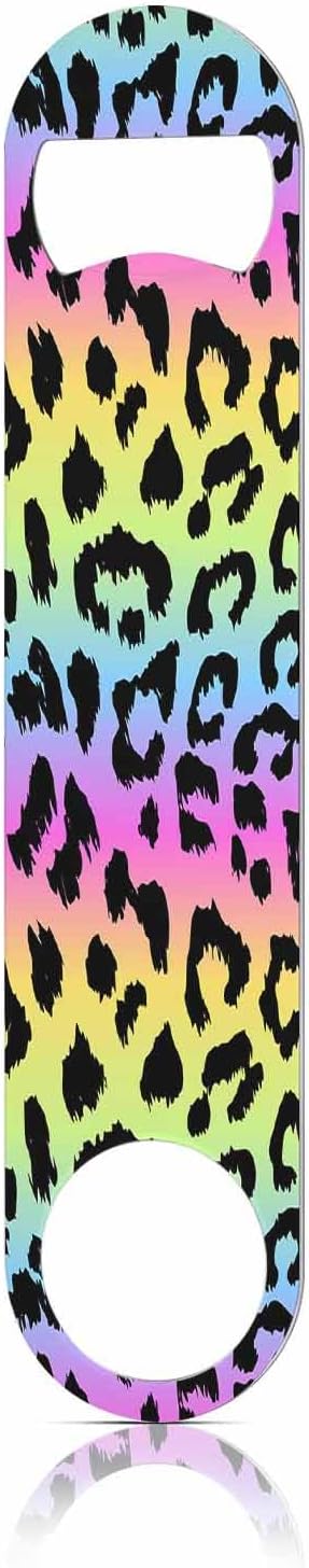 Leopard Print Stainless Steel Bottle Opener Rainbow Colors Leopard Trendy Black Spots Fur Jaguar Wild Animal Flat Beer Bottle Opener Keychain for Home Kitchen Bar Restaurant Party Gift