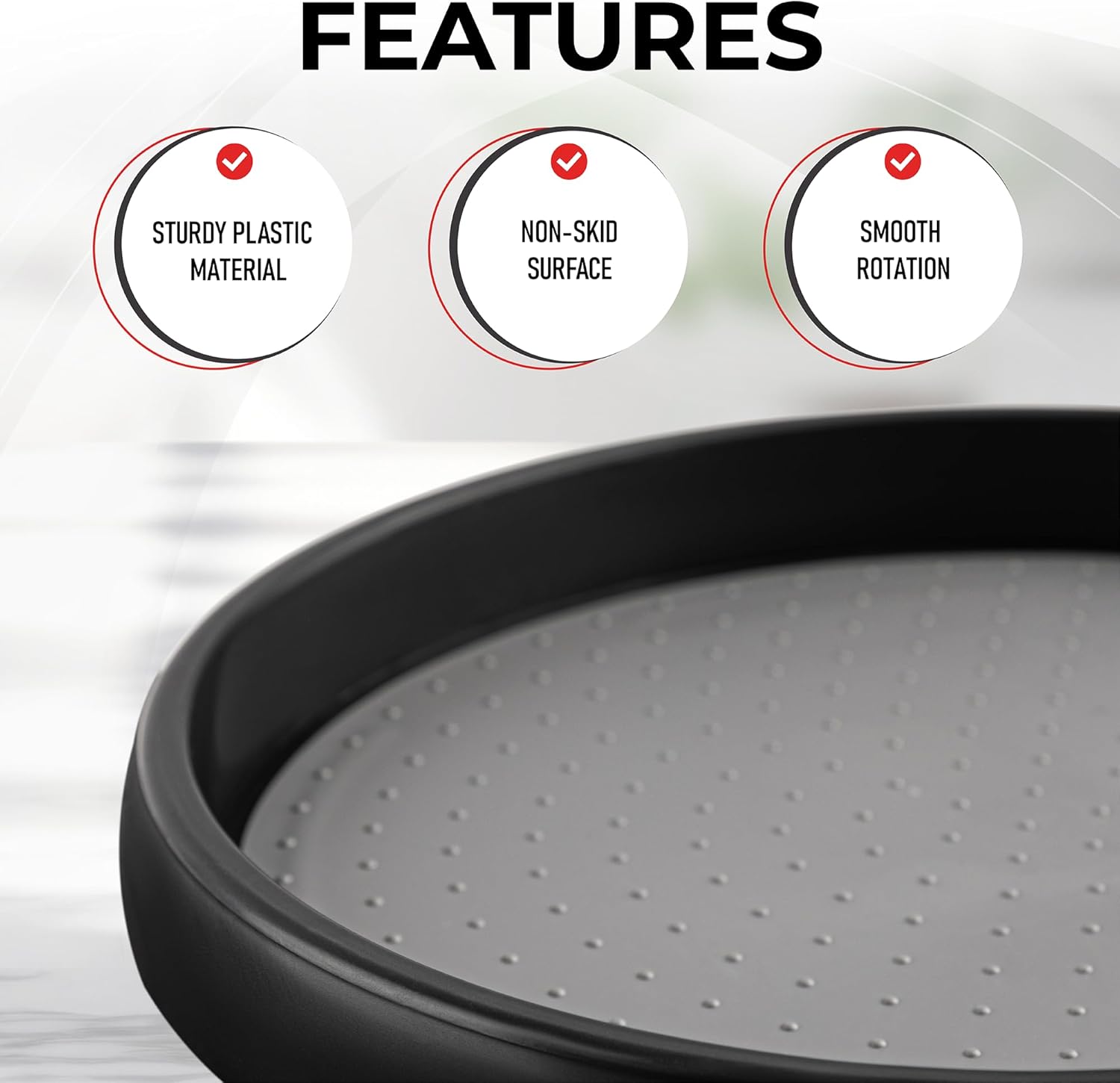 Oizeir 10 Inch Lazy Susan (Set of 4) - Non-Skid Turntable for Cabinet to Maximize Storage and Simplify Accessibility in Kitchen, Bathroom, and Pantry Spaces (Black)