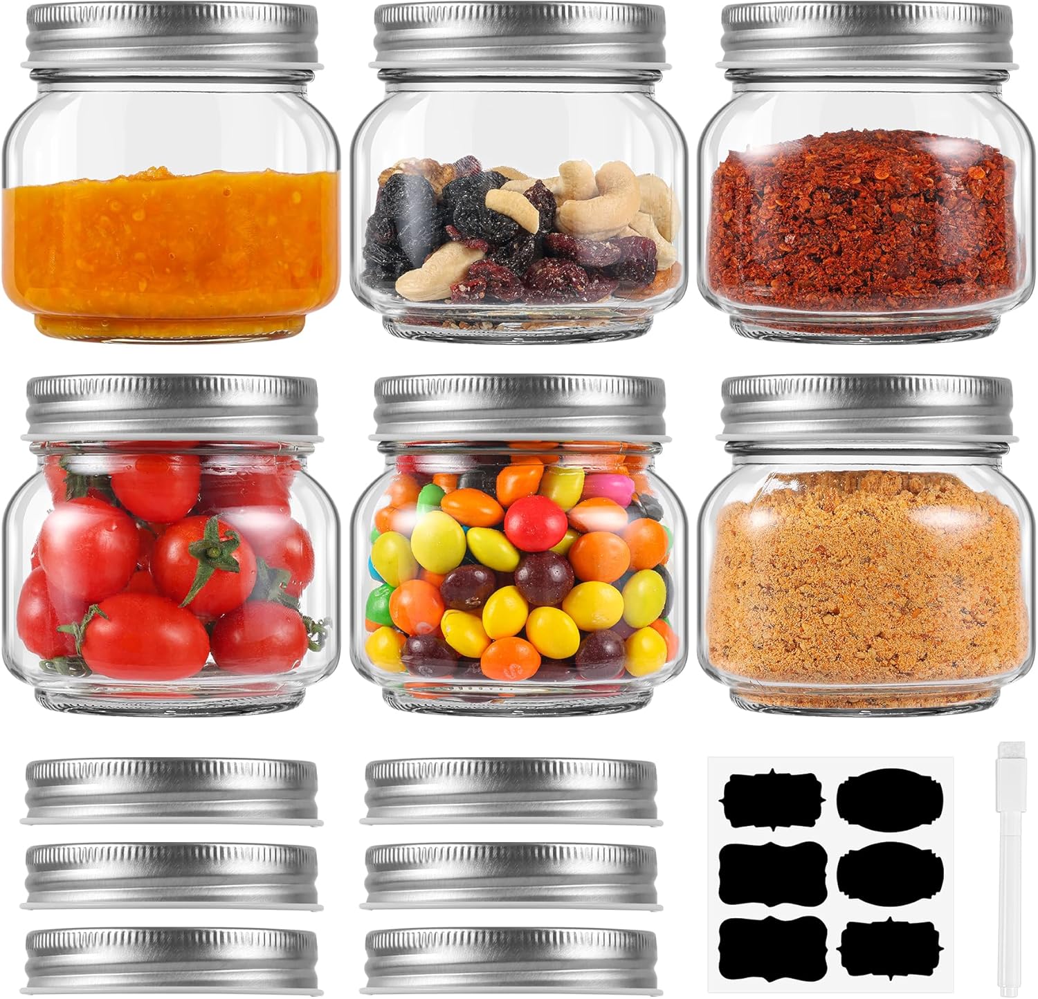 6 Pack Small Mason Jars with Labels, 8 oz Glass Jars with Airtight Lids, Half Pint Canning Jars for Jelly, Jam, Honey, Pickles, Spice, Overnight Oats, Food Storage, Candle & DIY Present
