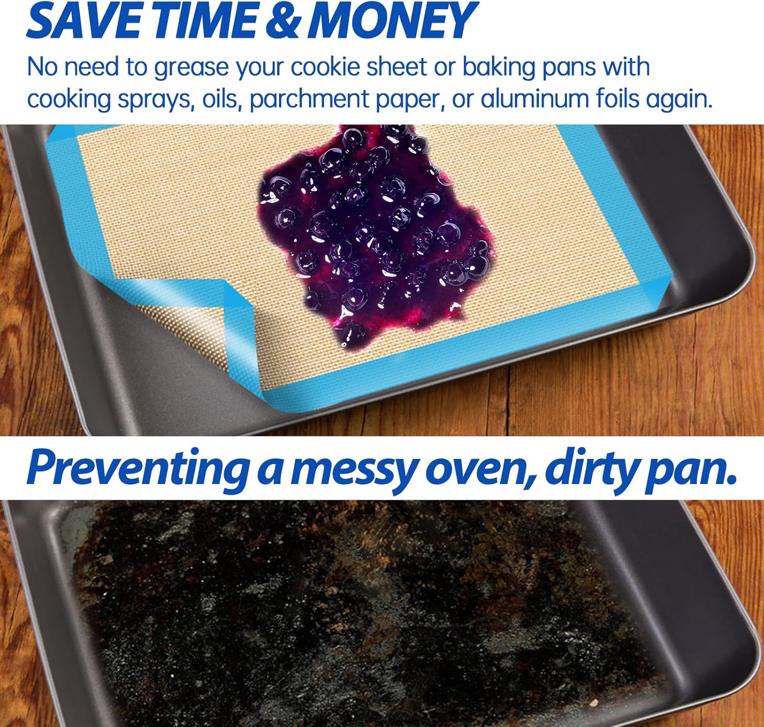 - 【Non-stick and Reusable Surface】Say goodbye to cooking spray, aluminum foil or parchment paper. These reusable baking mats distribute heat evenly for perfect baking results every time.