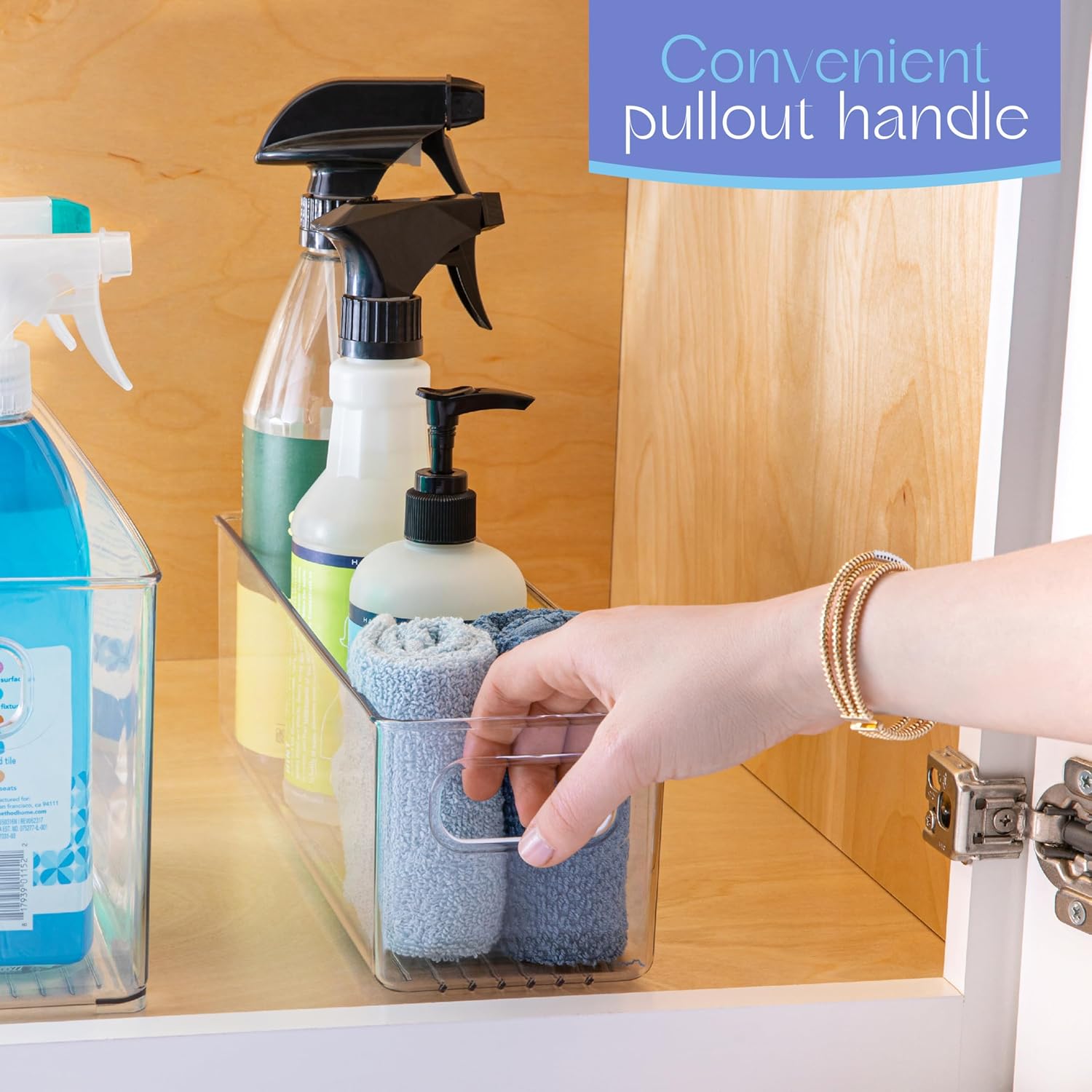 Plastic Food Storage 2 Pack Clear Container Bin with Handles for Organizing Kitchen, Pantry, Refrigerator, Freezer, Pantry, Cabinet, Closet, Bathroom. 14”X4”x4”