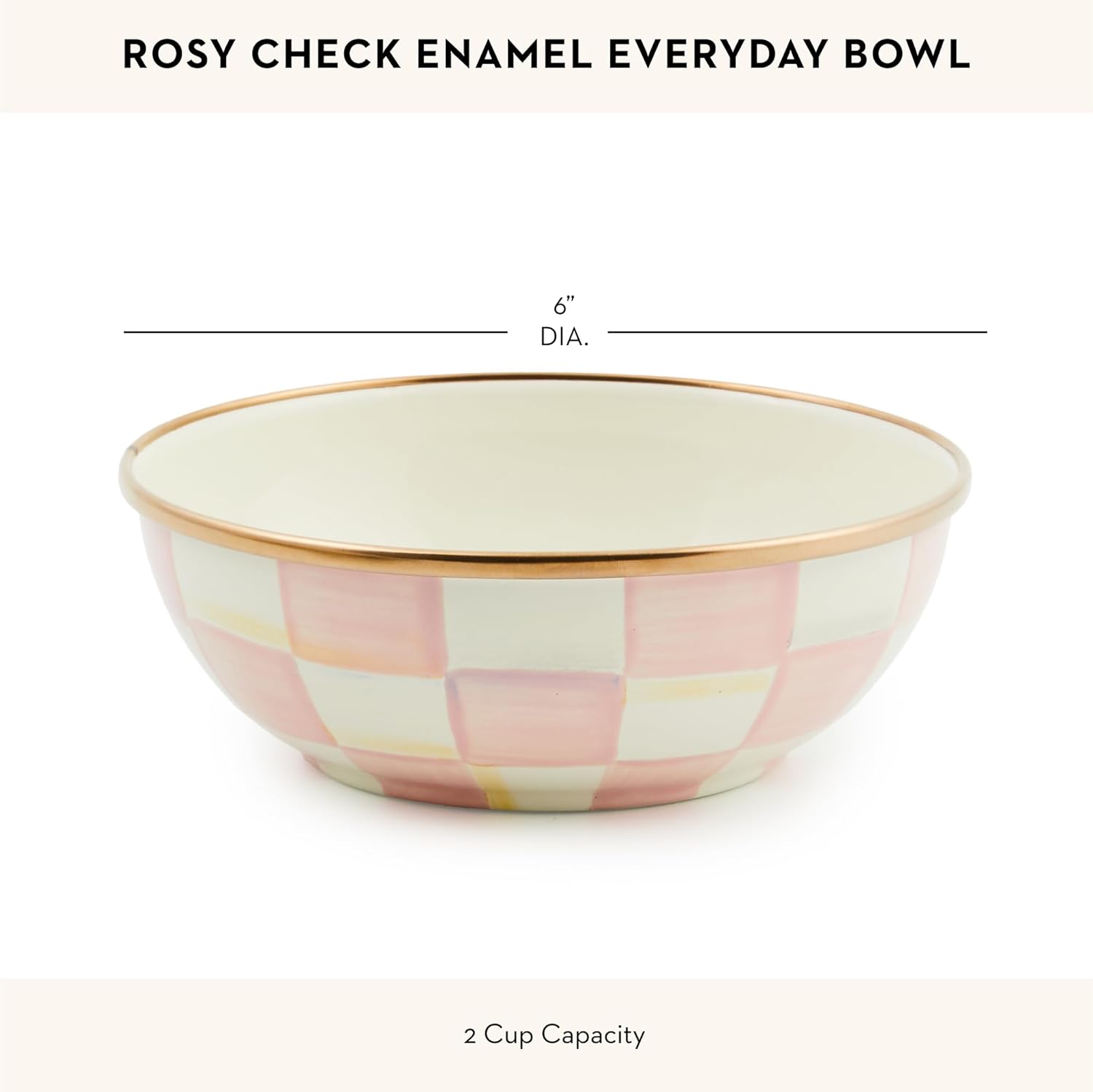 - ELEGANT ESSENTIAL: Elevate any meal with this decorative bowl. It has a hand-glazed heavy-gauge steel underbody and a bronzed stainless-steel rim and is decorated with hand-painted pink-and-white checks.