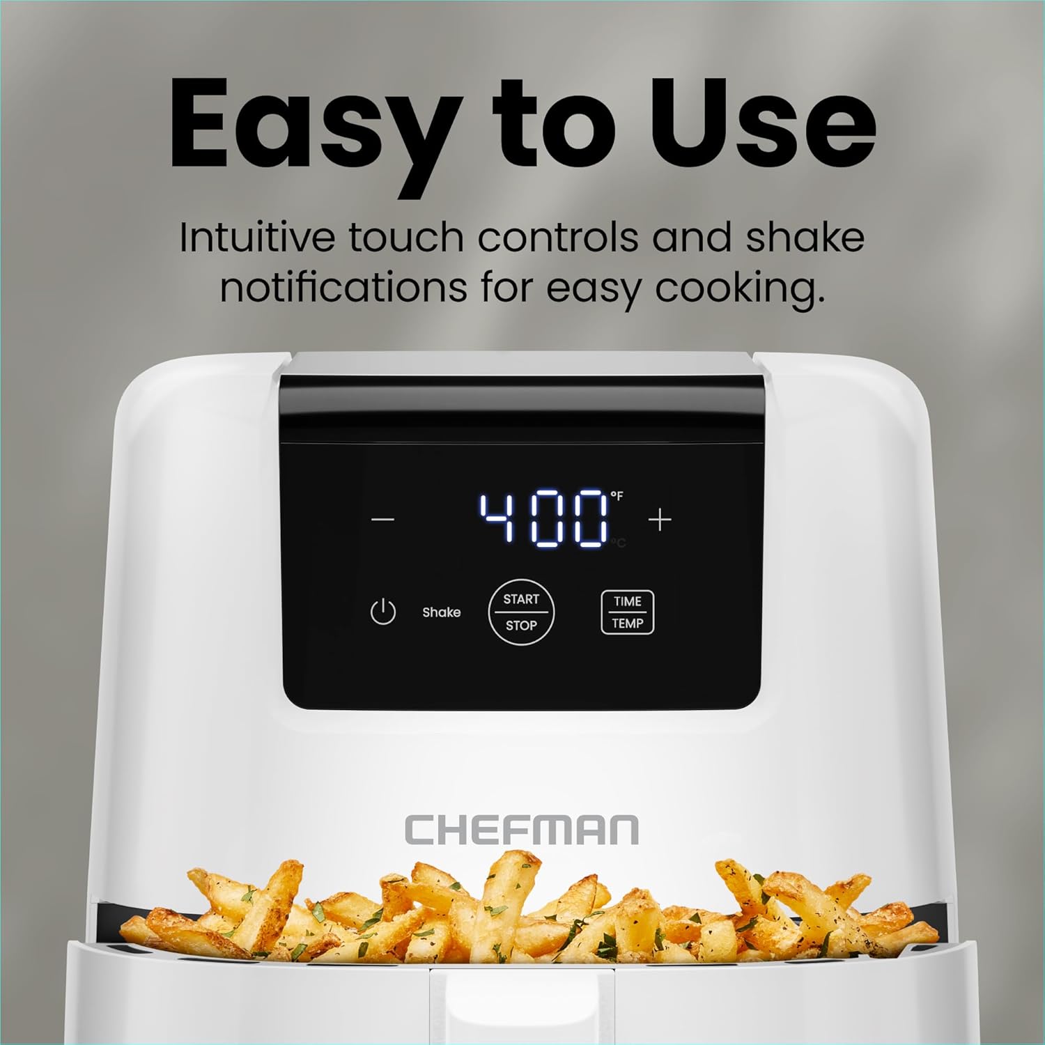 CHEFMAN 2 Qt Mini Air Fryer – Digital Space-Saving Compact Air Fryer with Nonstick and Dishwasher Safe Basket, Quick & Easy Meals in Minutes, Features Digital Timer and Shake Reminder – White