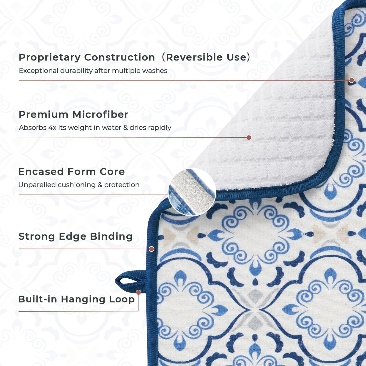 FRESHMINT Printed Dish Drying Mats for Kitchen Counter 2 Pack Absorbent Reversible Drying Mats Microfiber Kitchen Countertop Protector Dishes Drying Pad Extra Large 18"x24" Dish Mat