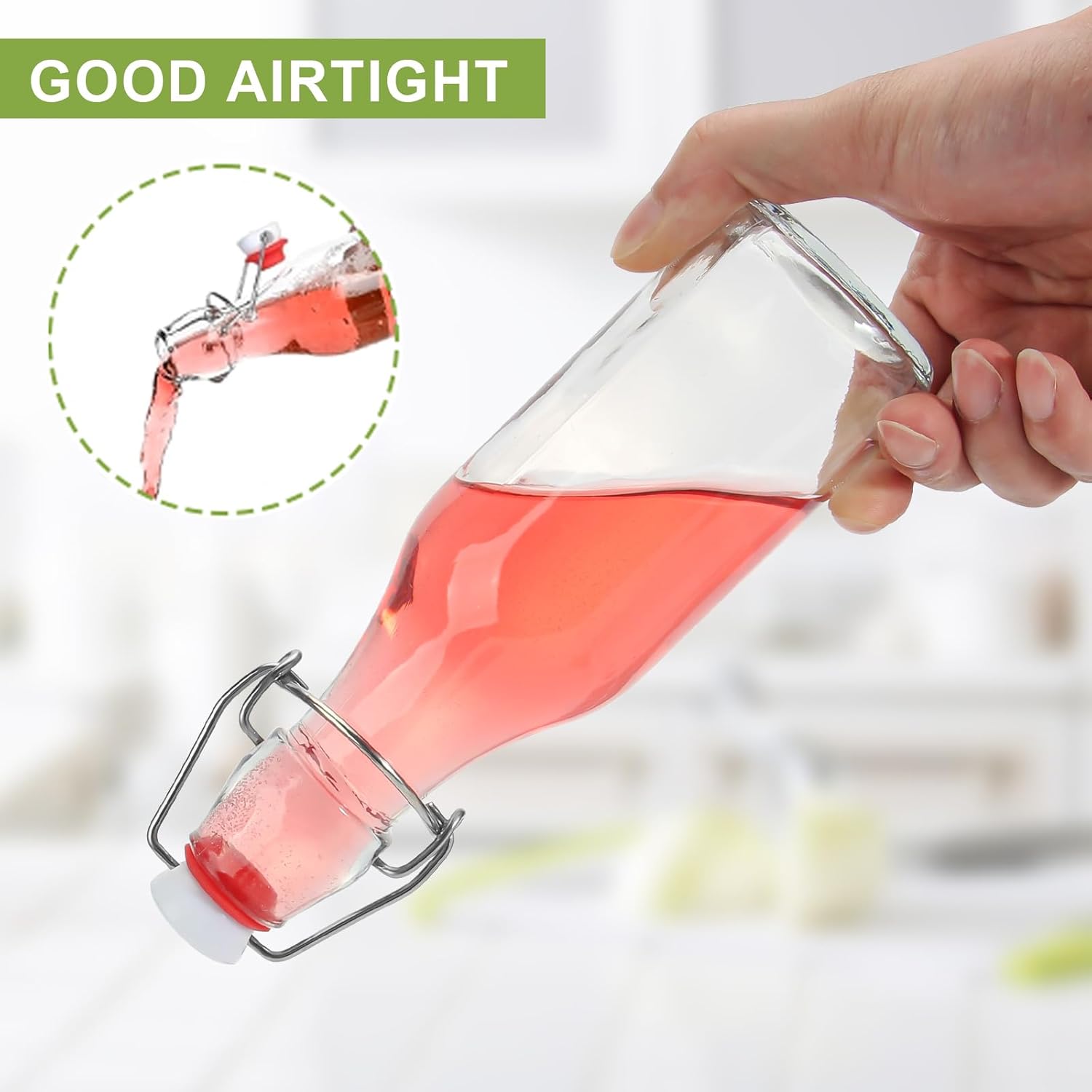 - Secure Airtight Seal for Freshness: Each flip top glass bottle features a reliable clamp top and silicone gasket that form a leak-proof seal,keeping beverages fresh and carbonation intact.These glass bottles with airtight lids are ideal for brewing beer,storing syrup,or creating vanilla extract without the worry of leaks or spills